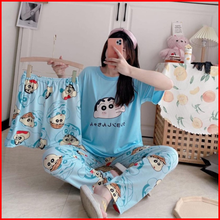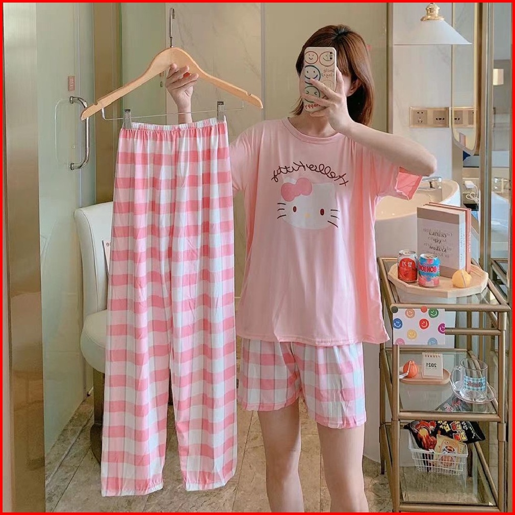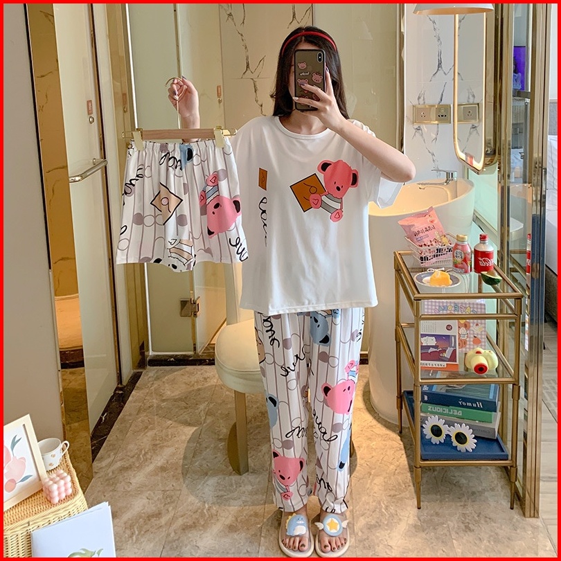 Set Piyama 3in1 Import Setelan Wanita Baju Tidur Lucu