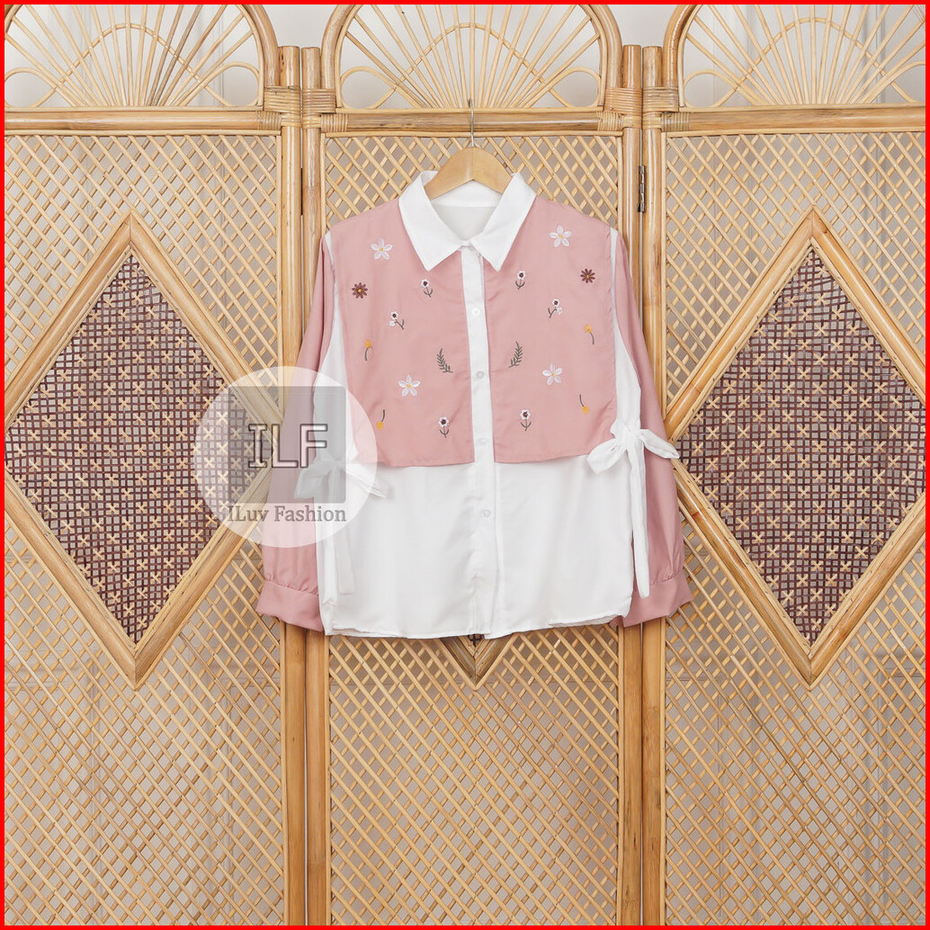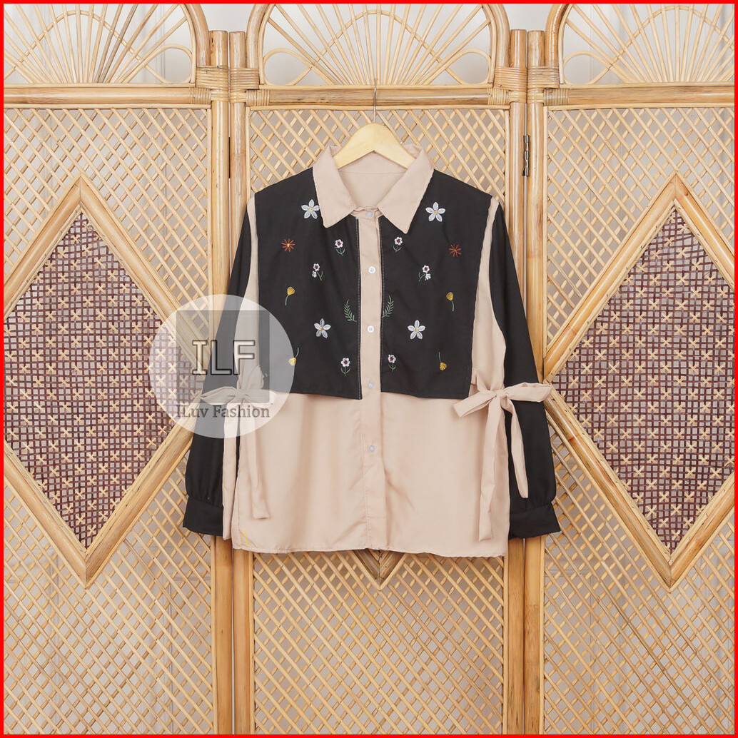 Il - Shenina Shirt Atasan Kemeja Flower Wanita Muslim Dewasa Bordir Korean Style Casual Daily
