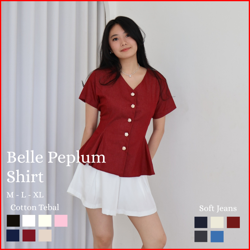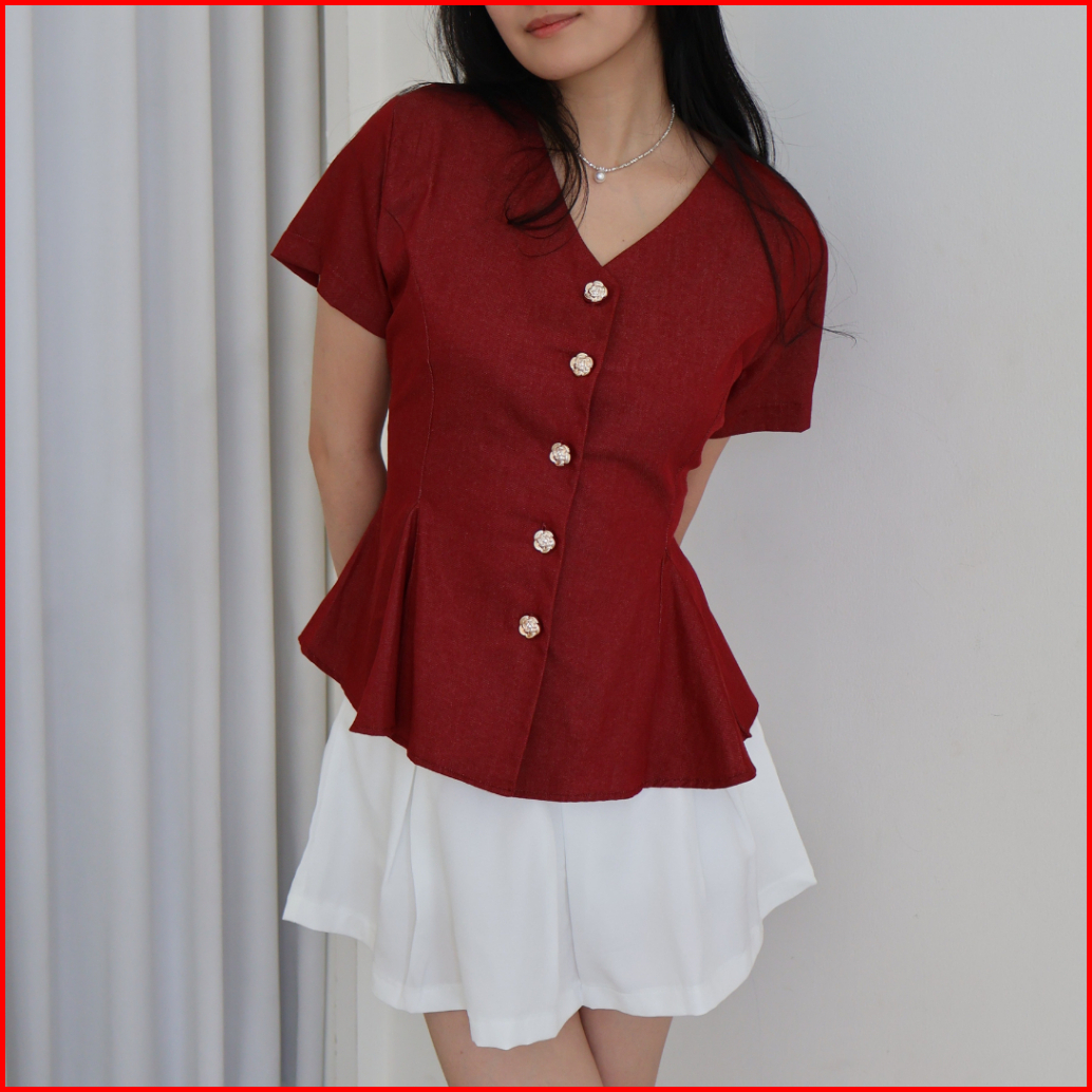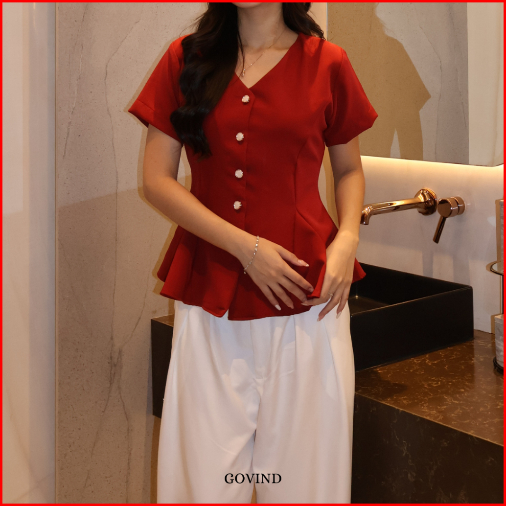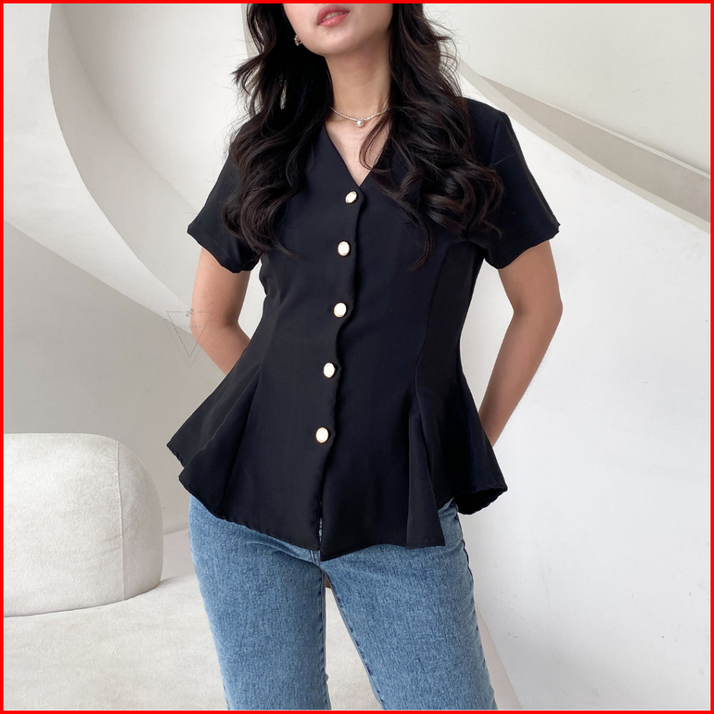 Govind.idn - Belle Peplum Shirt Lengan Pendek Slim Fit Shirt Wanita Kemeja Atasan Wanita