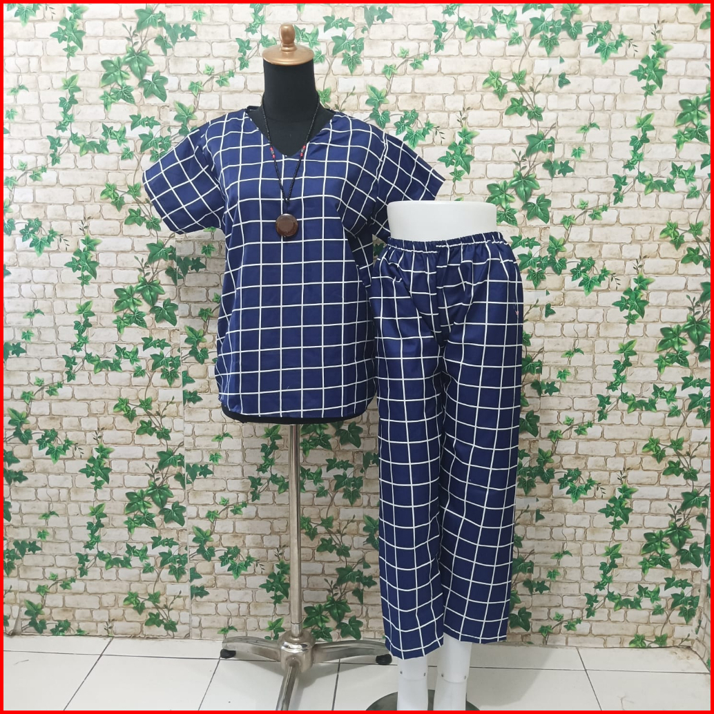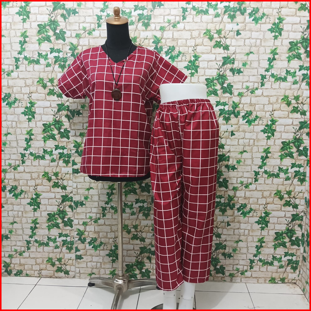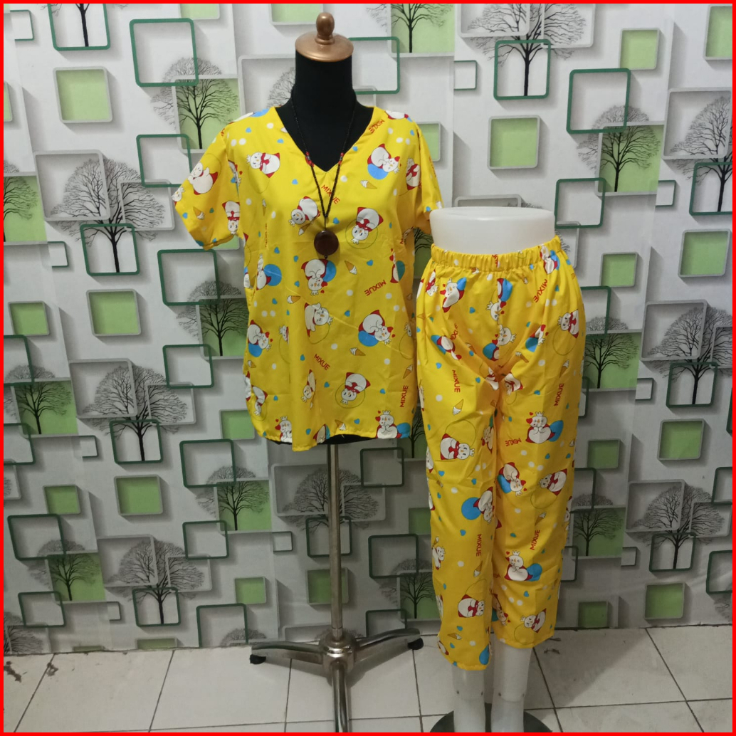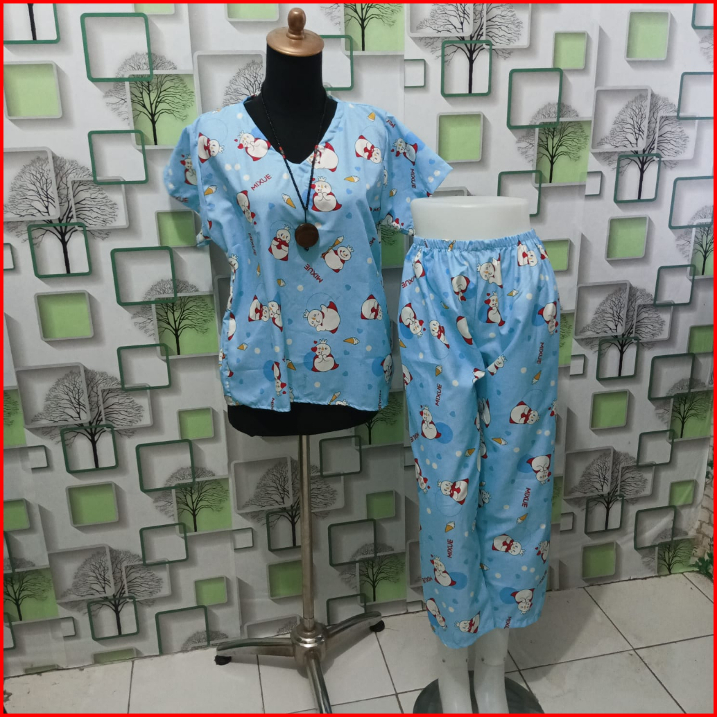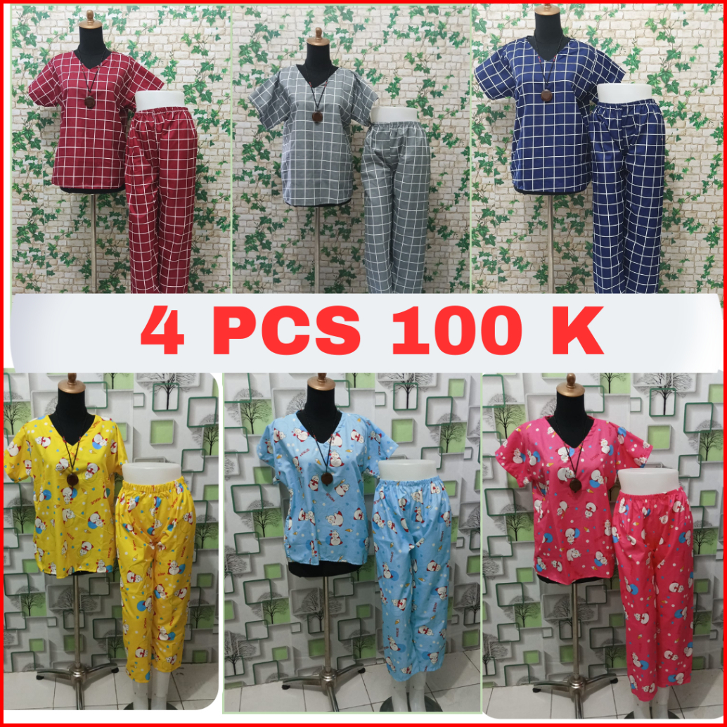 100k 4pcs Piyama One Set Andin Motif Kotak Karakter Terbaru Baju Tidur Wanita Setelan Baju Santai