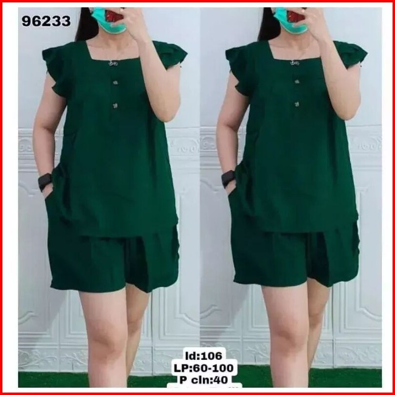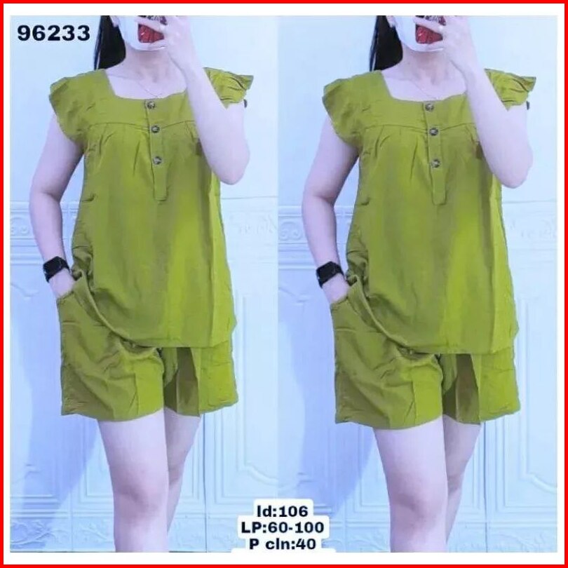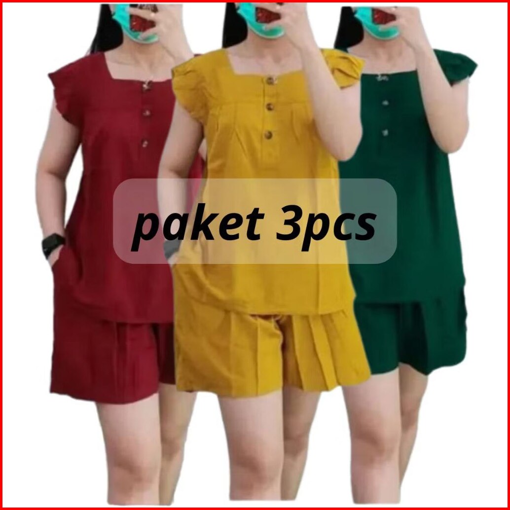 One Set Wanita Setelan Korean Style Hotpant Baju Tidur100 3 Pcs Promo