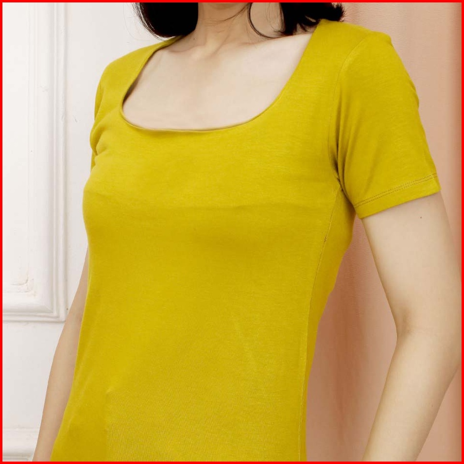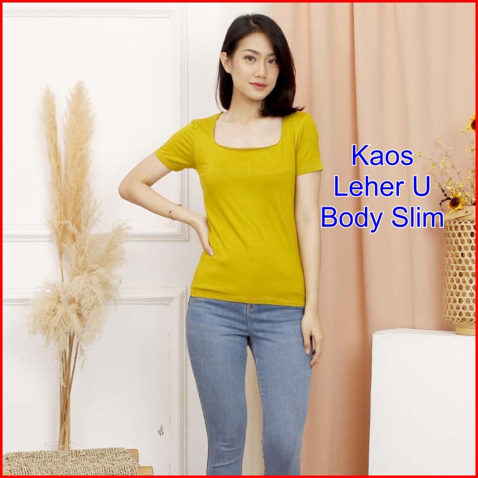 Kaos Atasan Wanita Leher U Top Stylish Wanita Body Slim Sexy Kaos Polos Lengan Pendek Murah