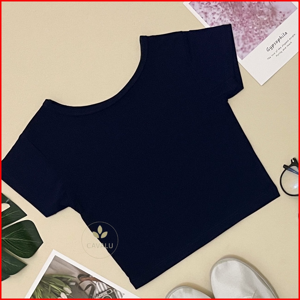 Cavalu Basic Korean Crop Top Kaos Polos Wanita Crop Tee Korea Casual Baju Atasan Wanita 052