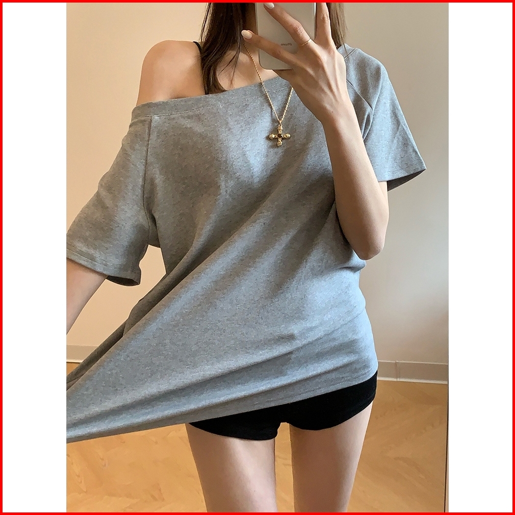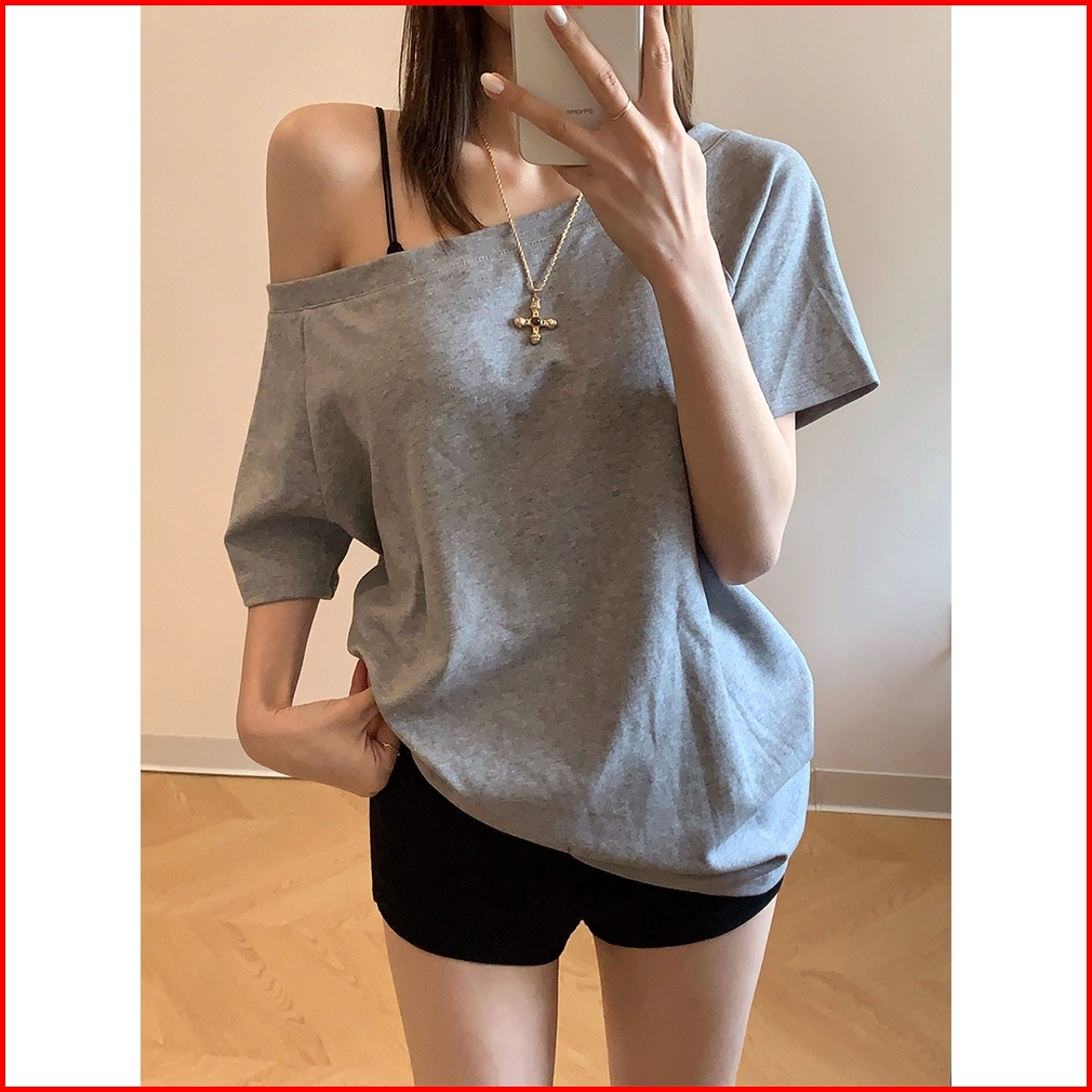 2toyoung T-shirt Putih Tshirt Y2k Atasan Offshoulder Atasan Knit Wanita Korean Top Baju Knit Wanita Lengan Pendek Basic