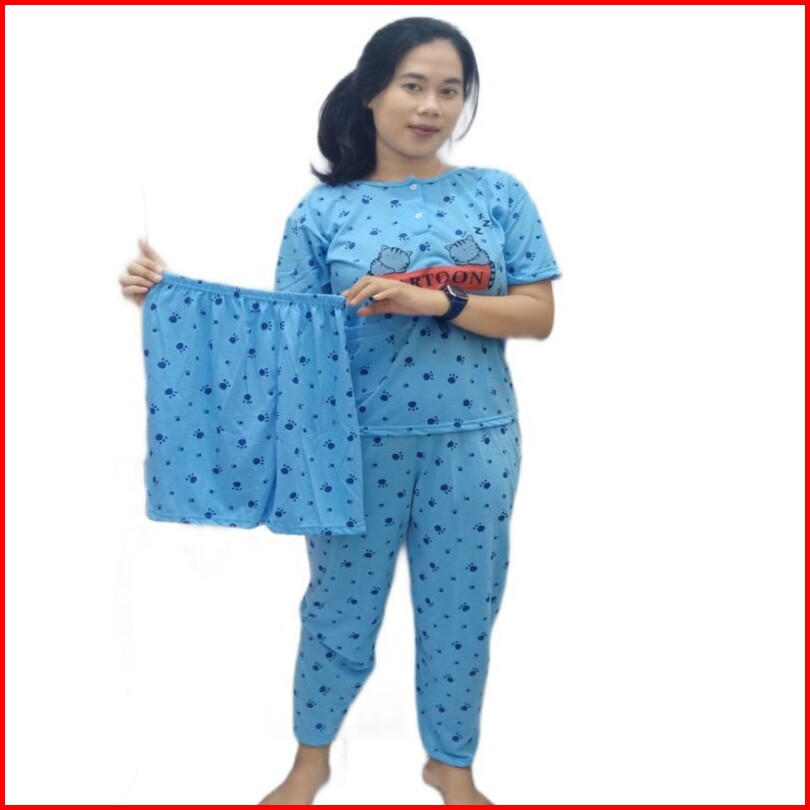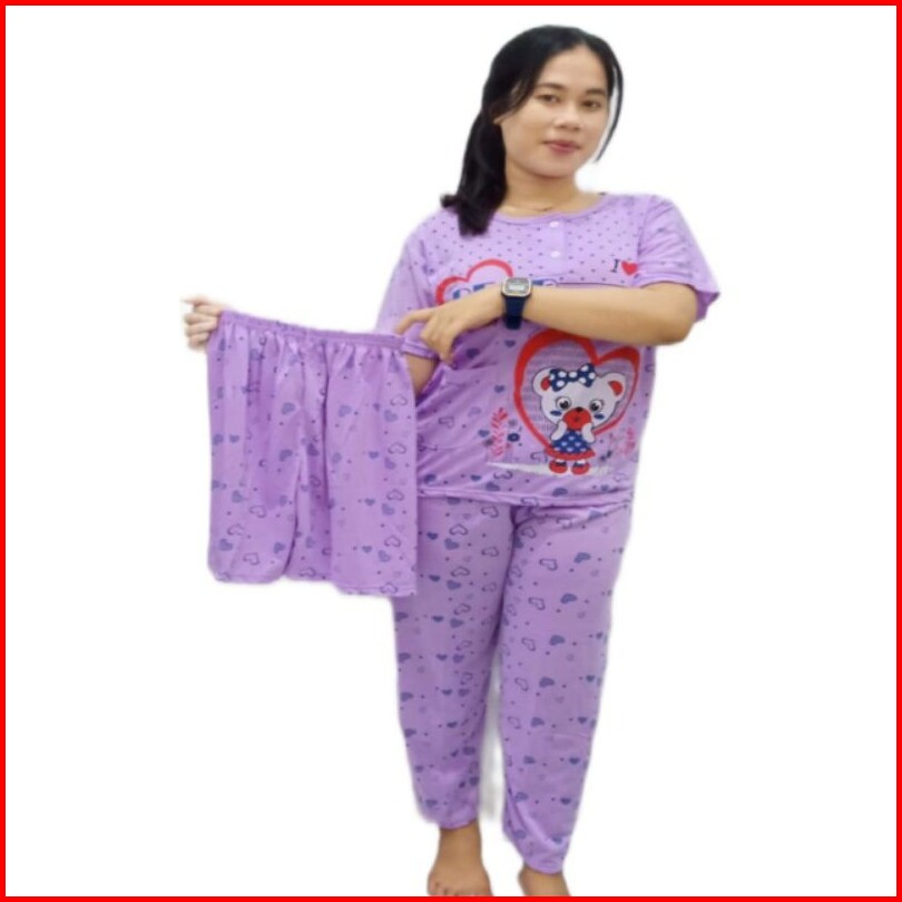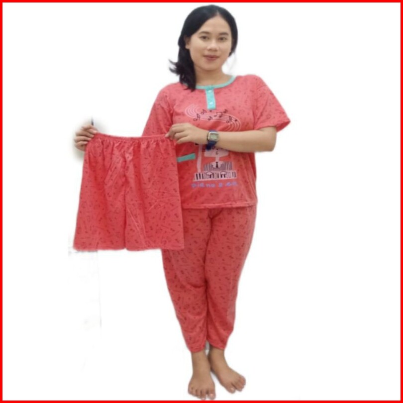 Baju Tidur Wanita Set 3 In 1 Baju 1 Celanan 2 Bahan Kaos Serian Muda Banyak Motif Bb Max 70kg