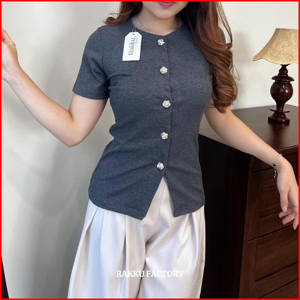 Rakku Jasmine Top 1914 - Kaos Wanita Crop Top Kancing Hidup - Baju Atasan Wanita - Tank Top Korean Style Kekinian