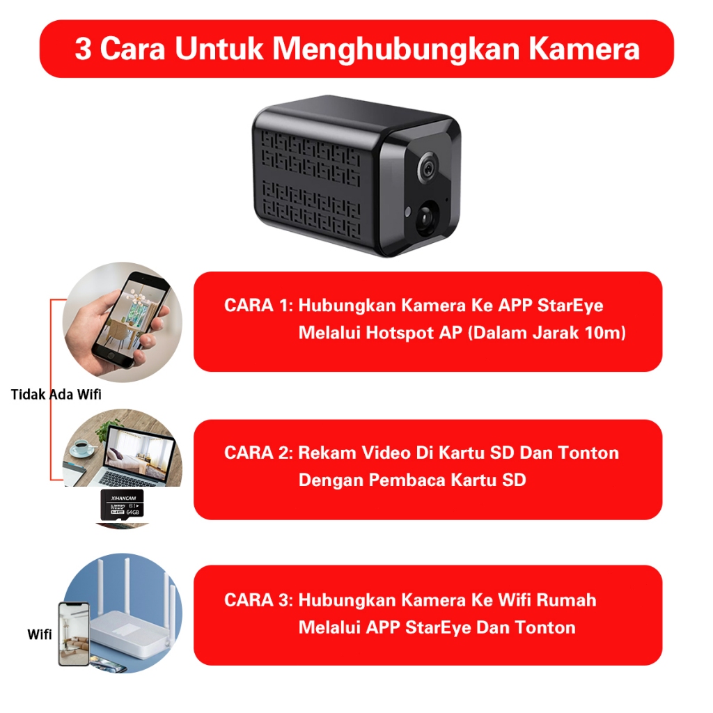 XIHANCAM 5MP Smart CCTV Mini Wifi Kamera Tersembunyi Baterai Tanpa Kabel Spy Cam Jarak Jauh Lewat HP