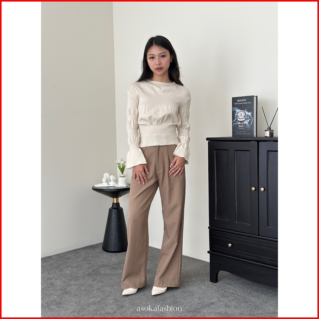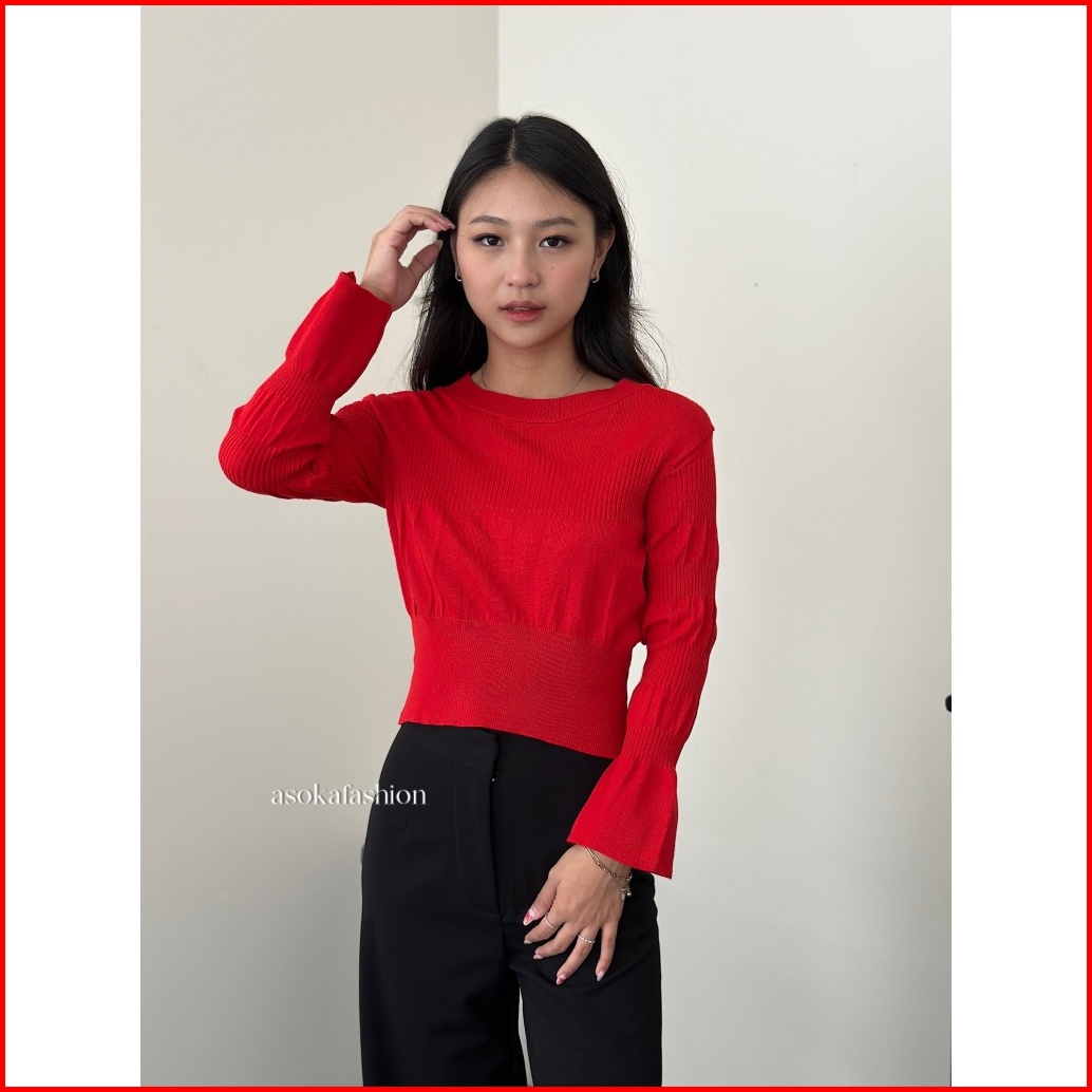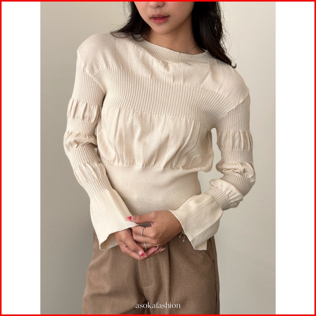 Asoka Haily Top 3145 - Smocked Women Knit Top Puff Long Sleeve - Korean Blouse Atasan Wanita