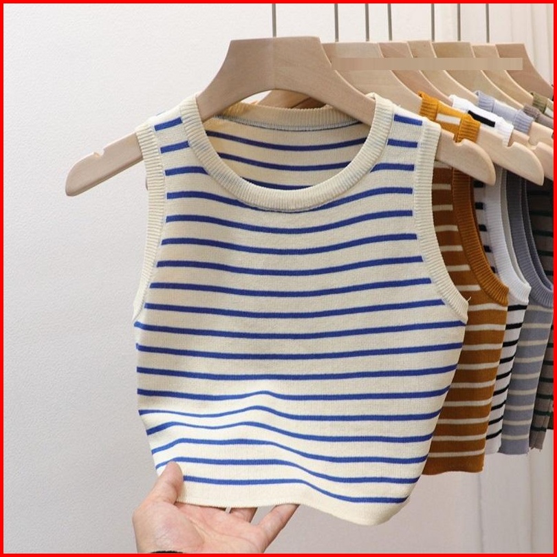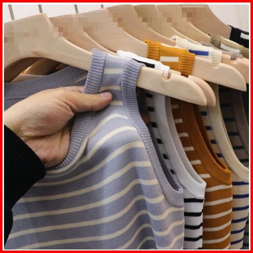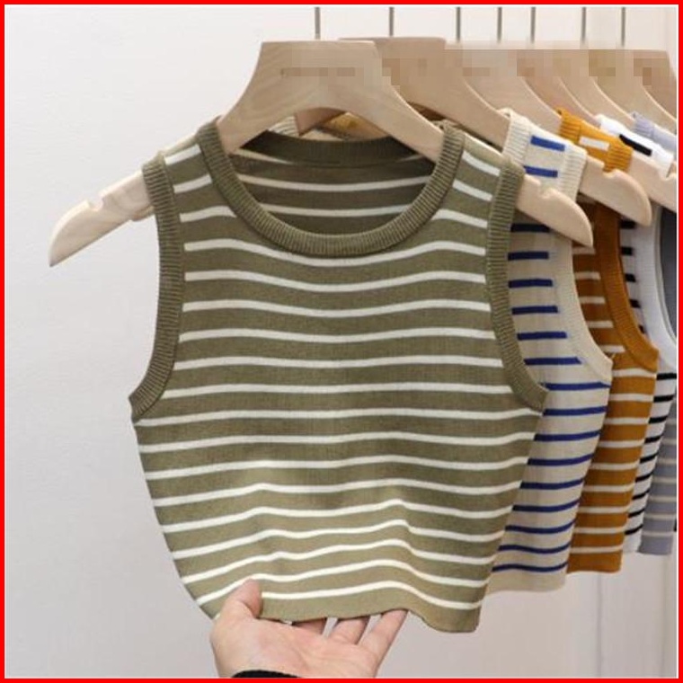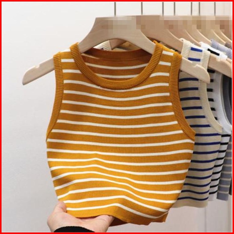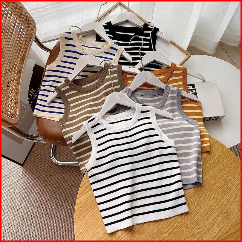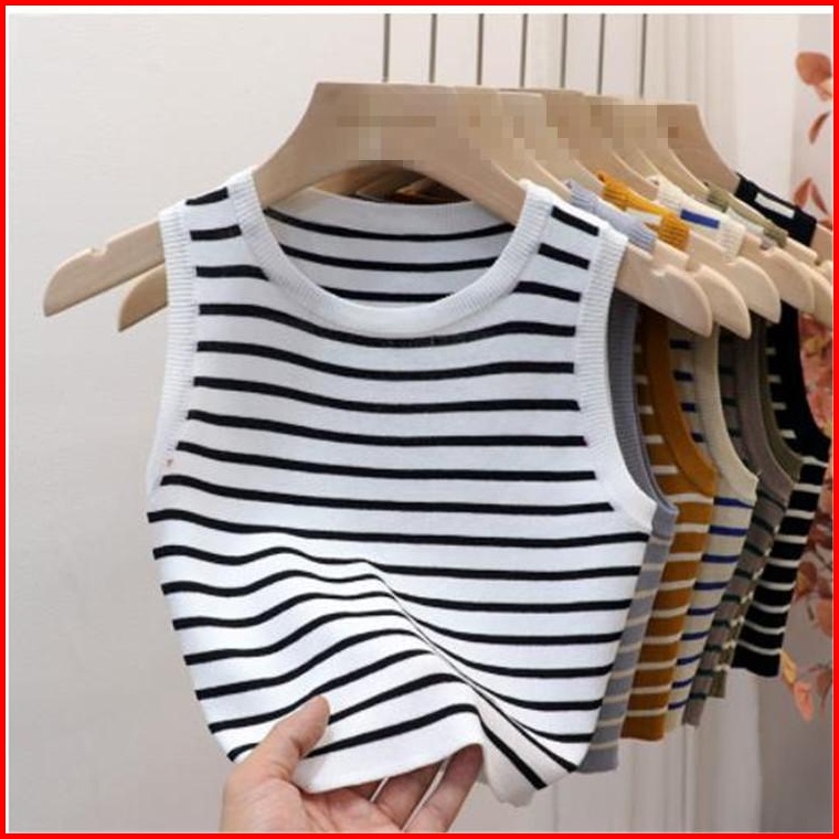 Atasan Rajut Salur Non Lengan Leher Bulat Fashion Wanita 019