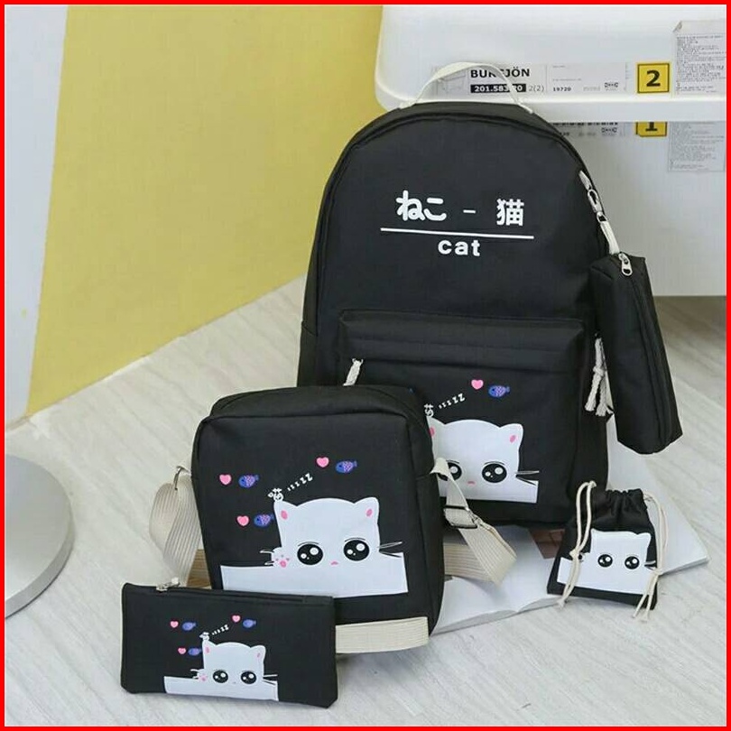Koyabags - Tas Ransel Sekolah Anak Perempuan 3in1 Motif Kucing Tas Ransel Anak Paud Tk Sd Multifungsi Tas Anak Fashion S