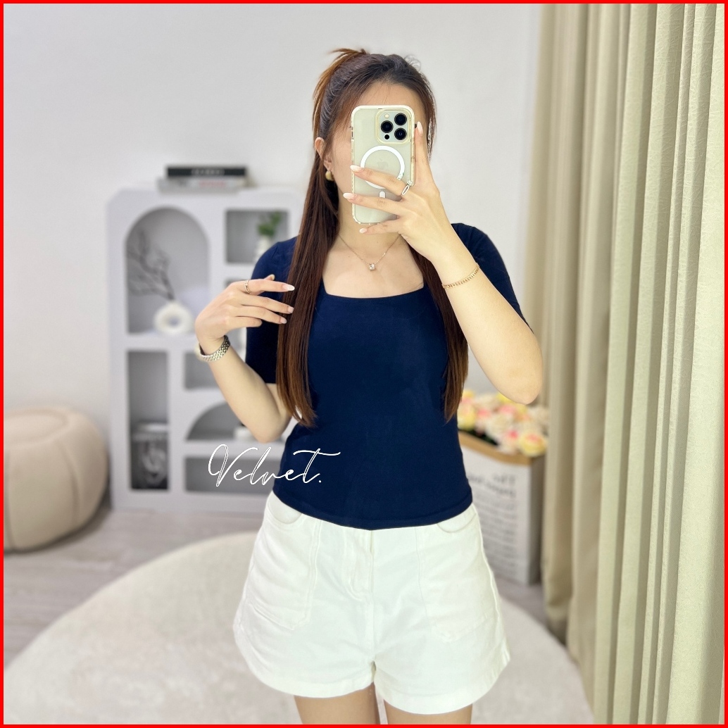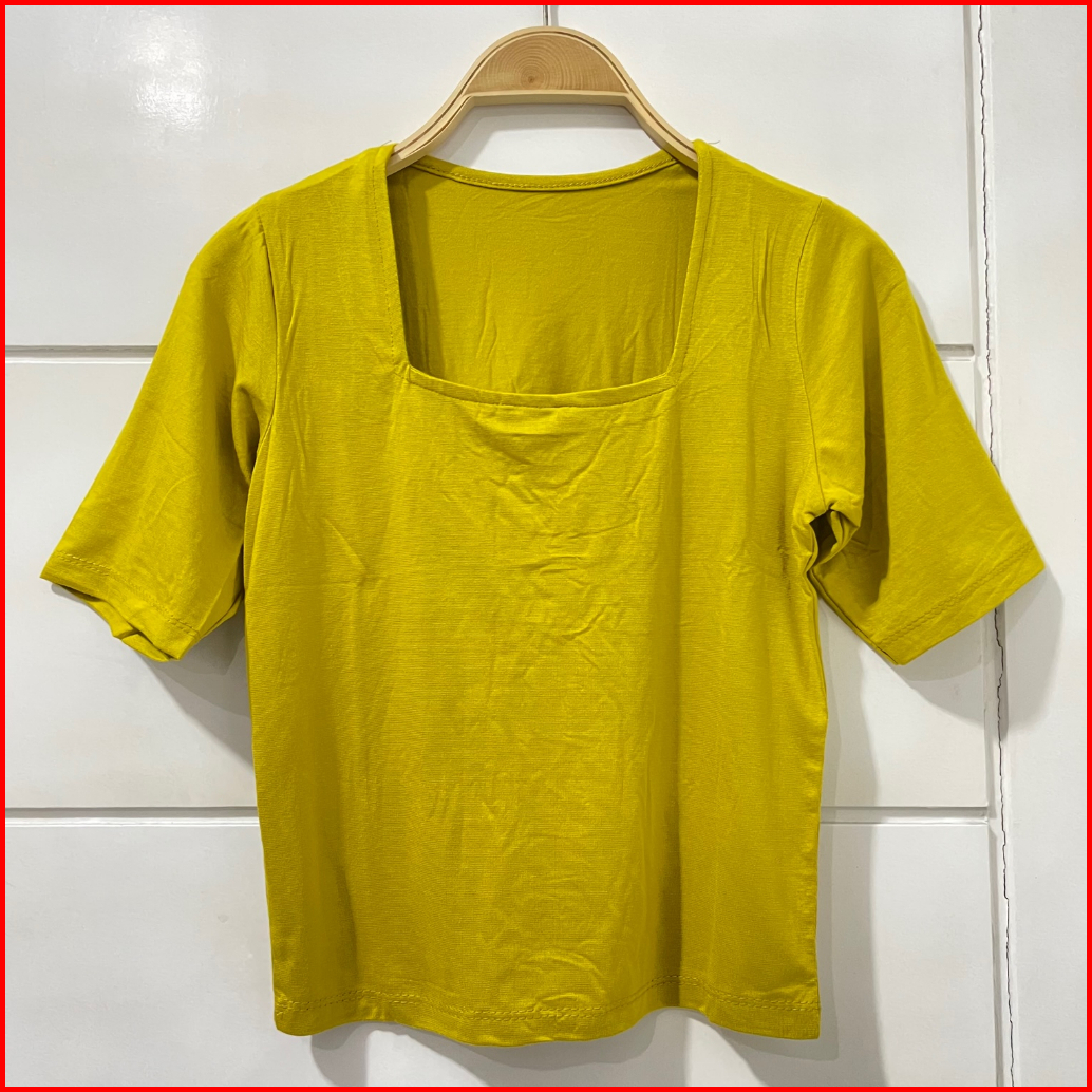 Square Neck Crop Top Wanita Kaos Atasan Polos Wanita Atasan Basic Wanita 6006