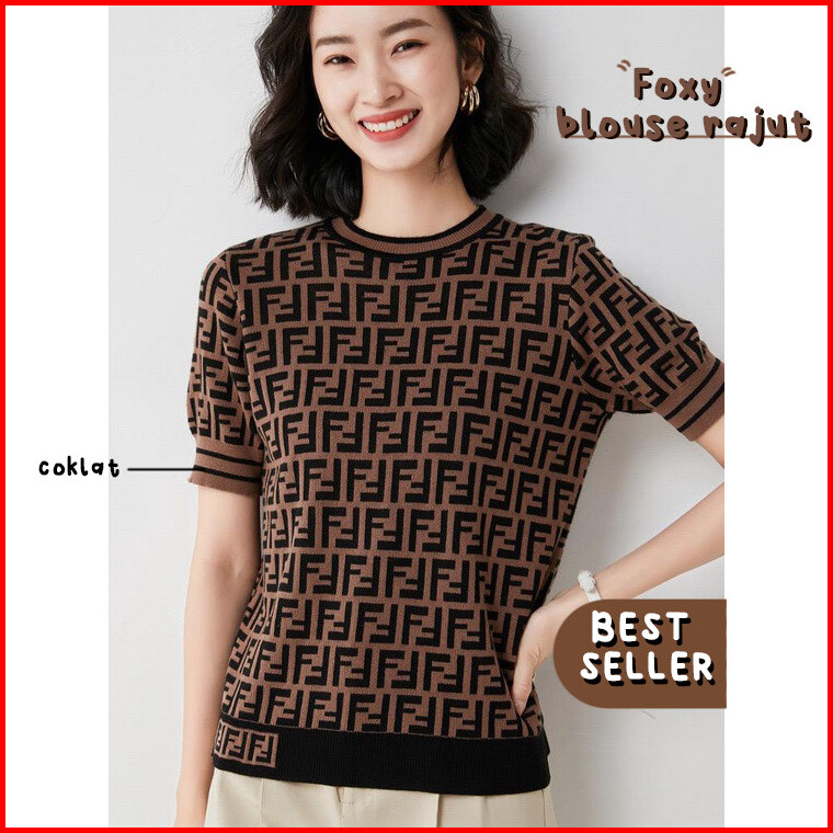 Leonna - Foxy Blouse Rajut Wanita Korean Style Ootd Cantik Kekinian
