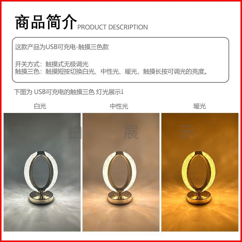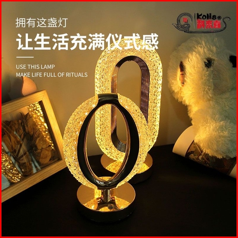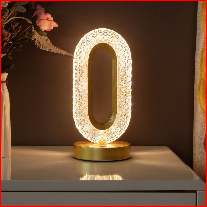 Lampu Meja Hias Aesthetic Acrylic Crystal Led Lampu Tidur Malam Cas Usb Type-c