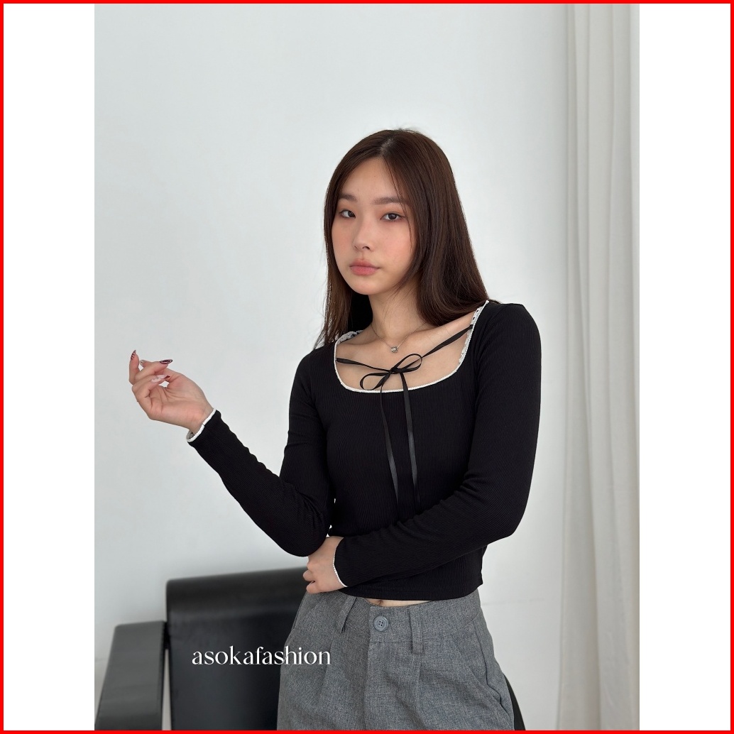 Asoka Yeva Top 3123 - U Neck Longsleeve Knit - Atasan Wanita Fit Body - Korean Crop Top Pita