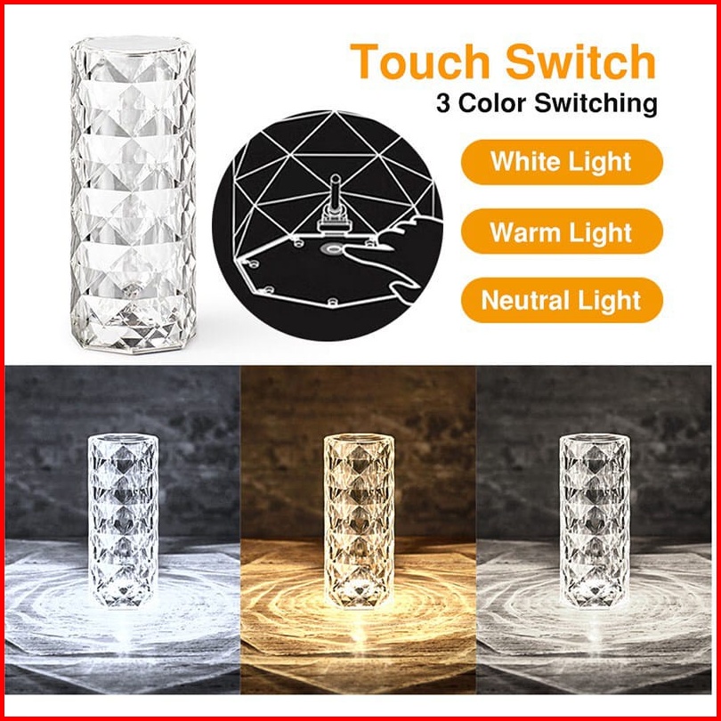 Sunly Lampu Meja Crystal Diamond Rose Light Table Lamp 16 Warna Rgb Touch Sensor Remote Control Lampu Hias Meja Kamar Ti