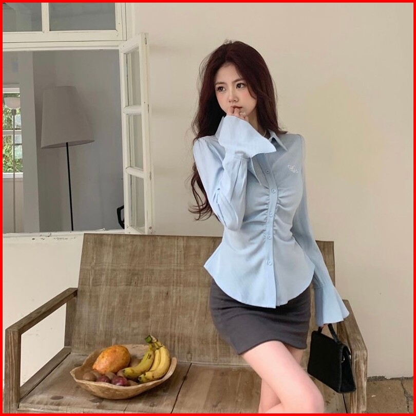 Kemeja Salur Casual Fit Body Wanita Kekinian Hijabers M694
