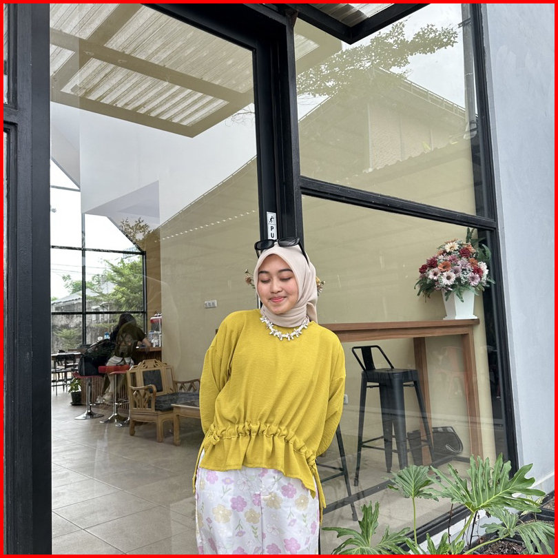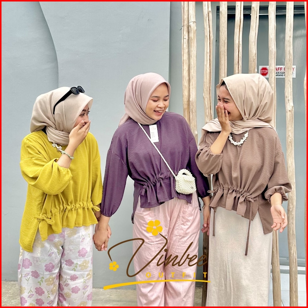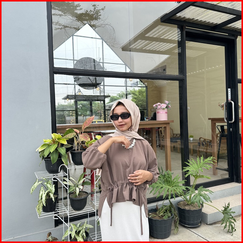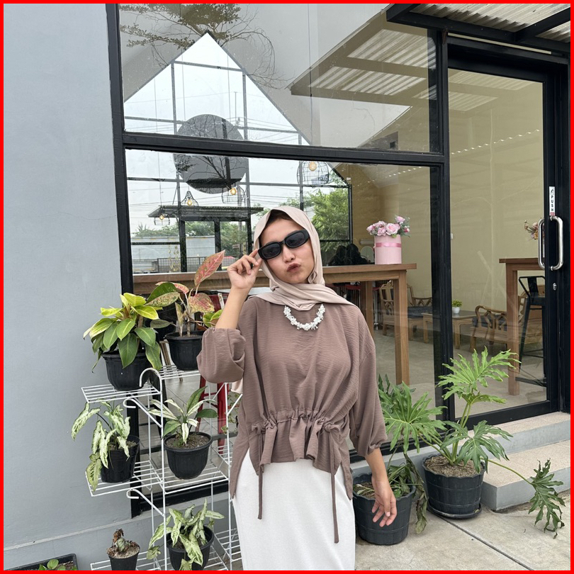 Blouse Jennie Serut Tali Blouse Crincle Airflow - Atasan Airflow Wanita Korean Look A1