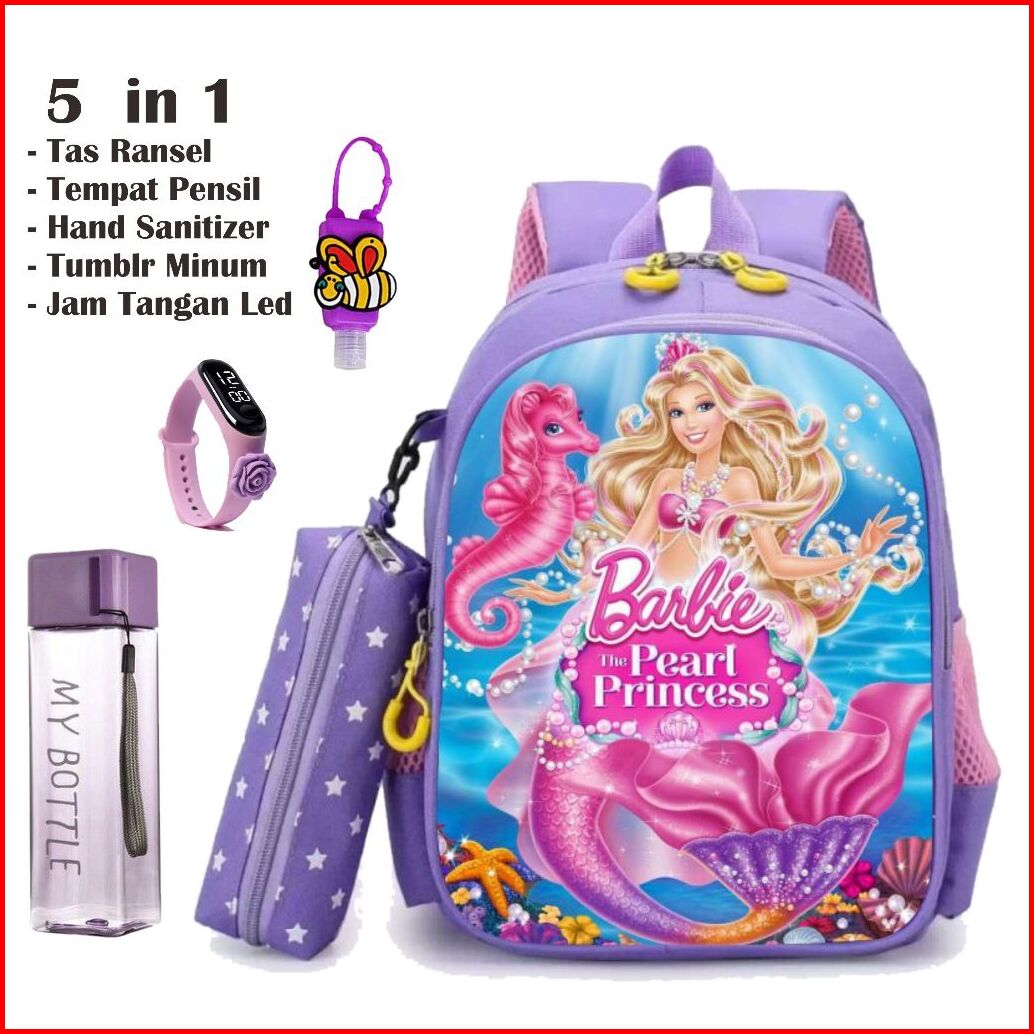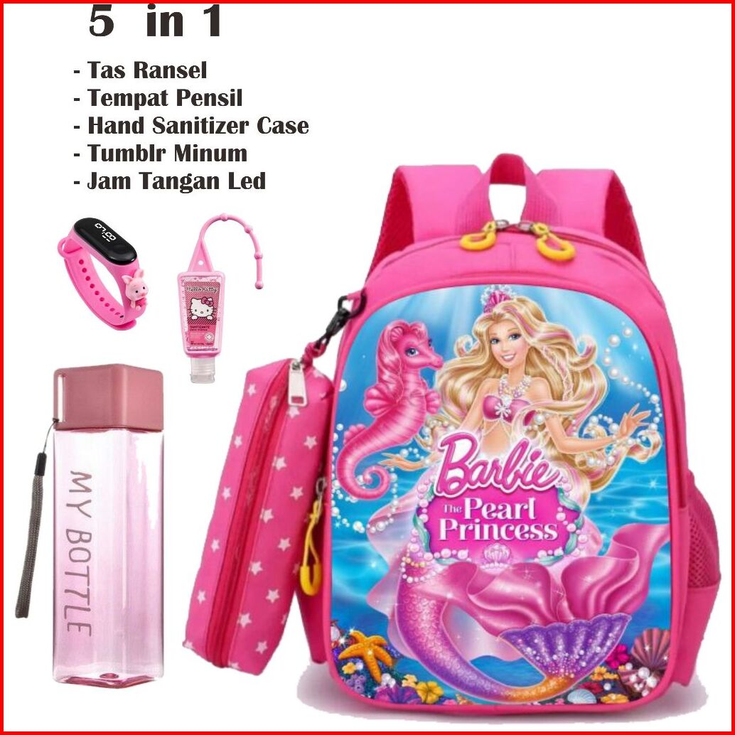 Premium Paket 5in1 Tas Anak Sekolah Perempuan Untuk Paud Tk Sd Karakter Barbie