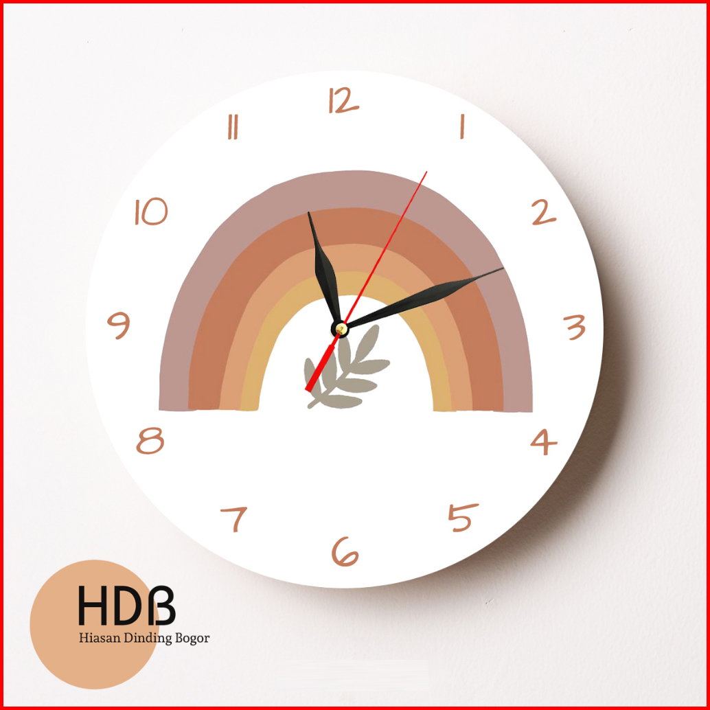 Hdb - Jam Dinding Aesthetic Pelangi Kamar Anak - Model Kayu Untuk Tampilan Elegan Dan Modern Di Ruang Tamu