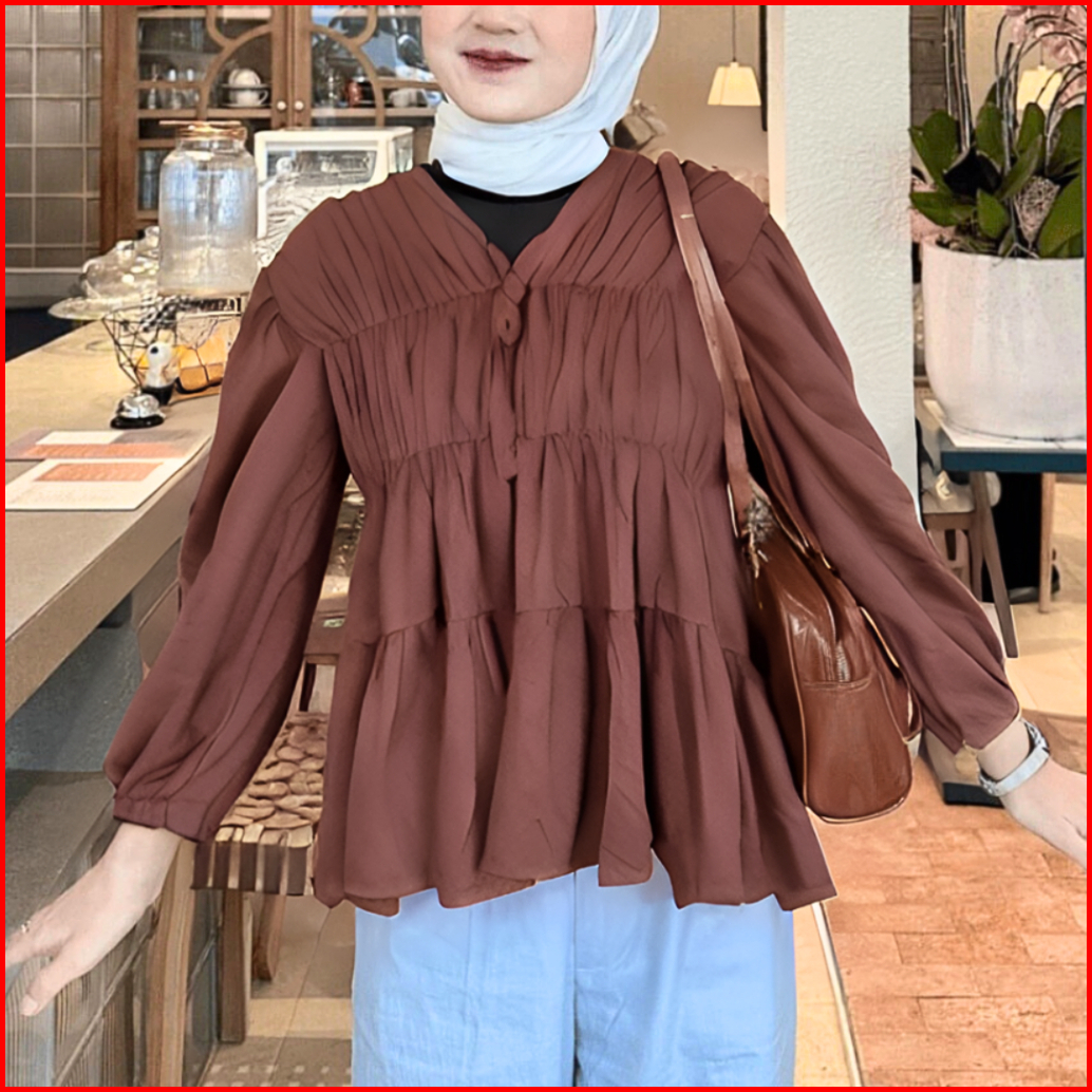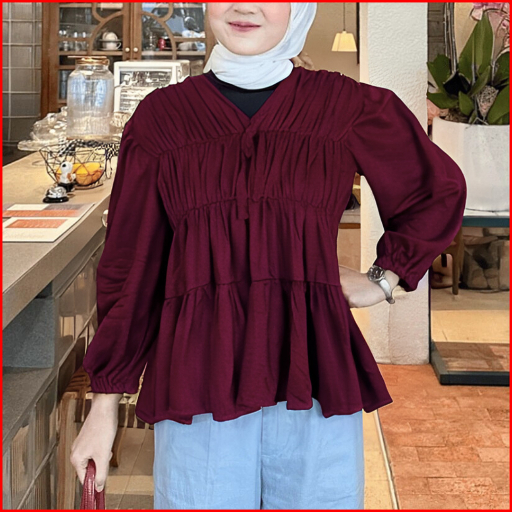 Mireya Blouse Rayon Kerut Polos Blus Serut Dada Rayon Wanita Kekinian Atasan Wanita Lengan Panjang
