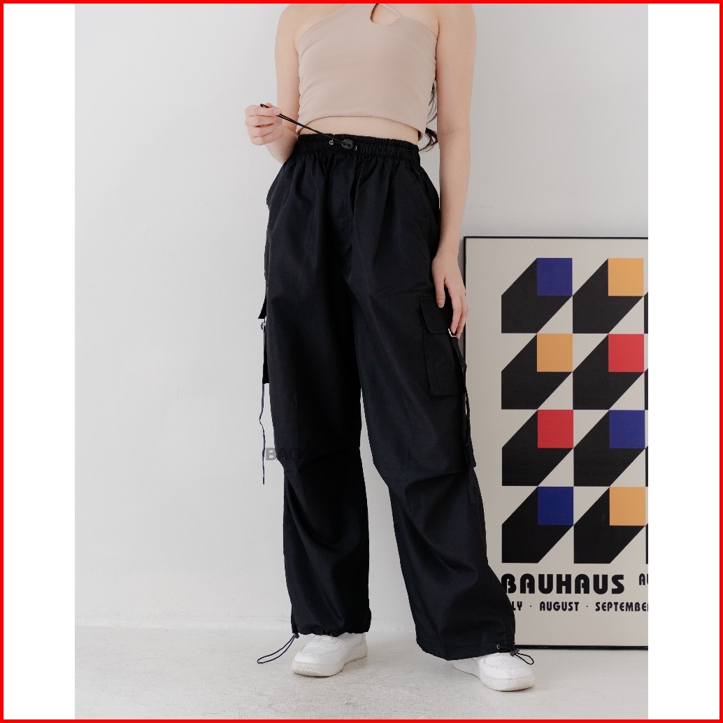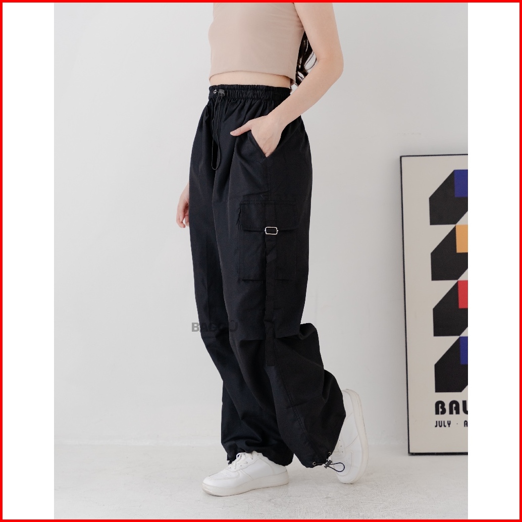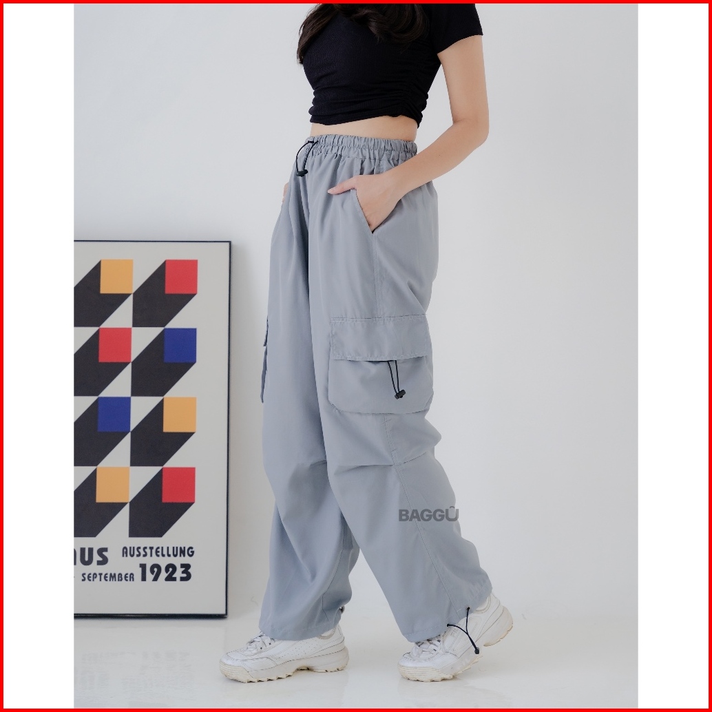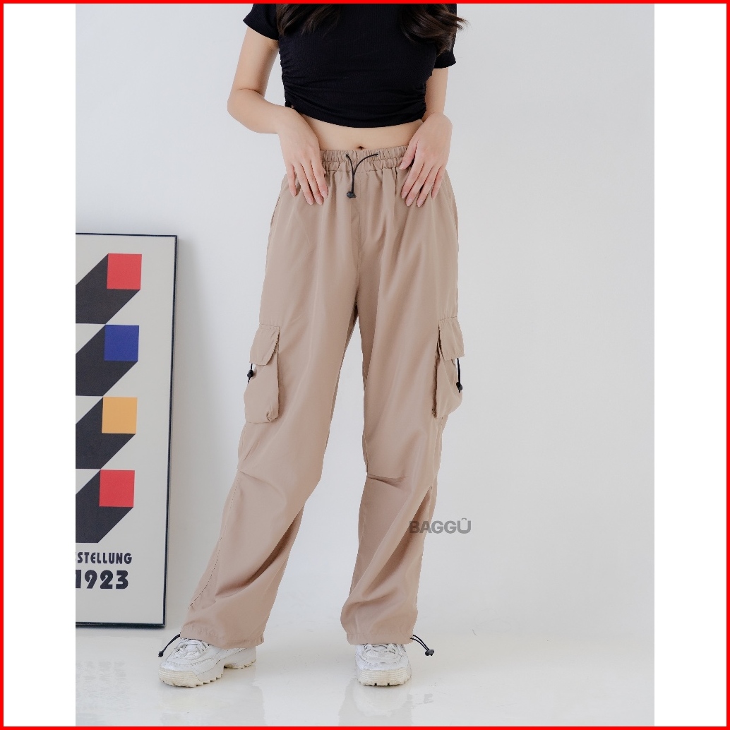 Baggu Nalista Cargo Parasut Celana Cargo Nylon Parasut Panjang Loose Pants Streetwear Korean Style