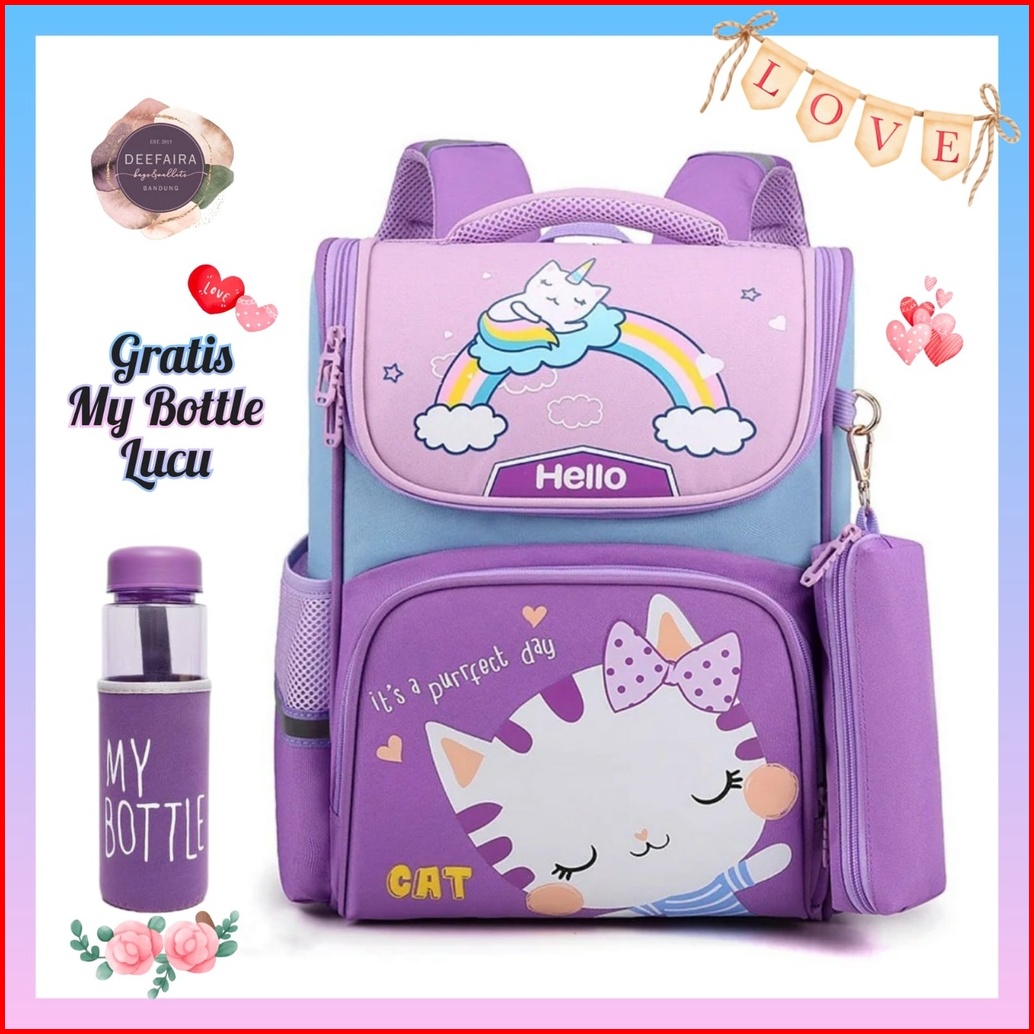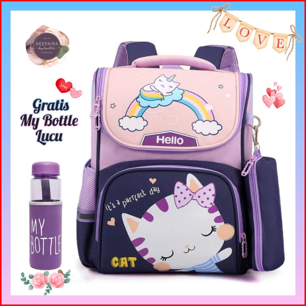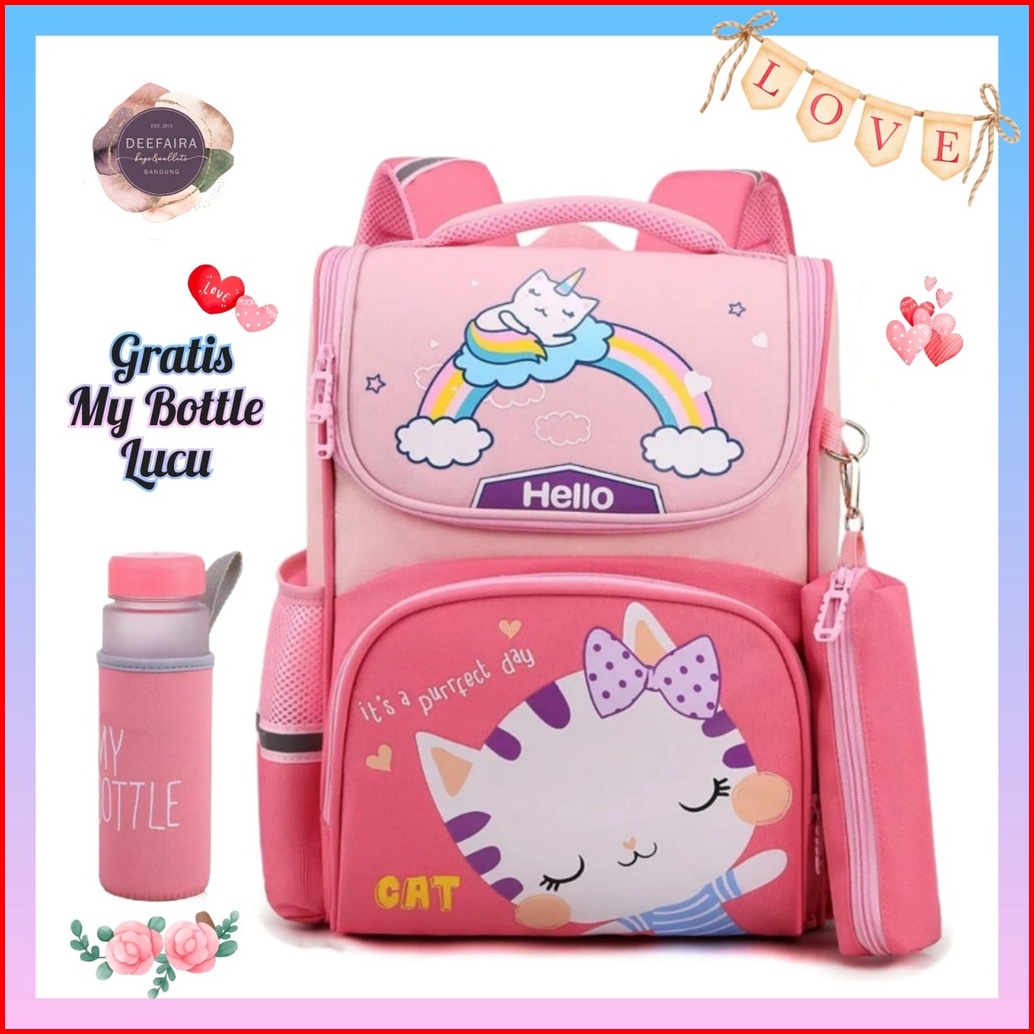 Tas Ransel Sekolah Anak Perempuan Motif C4t Happy Rainbow Gratis Tempat Pensil Dan Gratis Botol Minum Untuk Tk Paud Dan