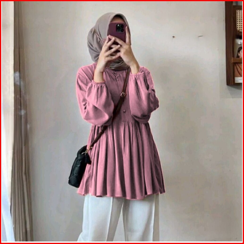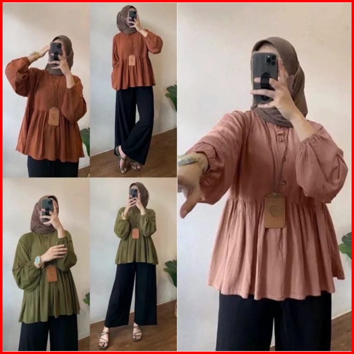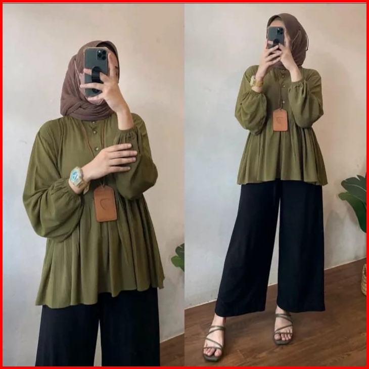 Alena Id Raisa Blouse Kemeja Polos Lengan Panjang Bahan Rayon Premium Atasan Wanita Ootd Hijab Terbaru Adem Dan Lembut