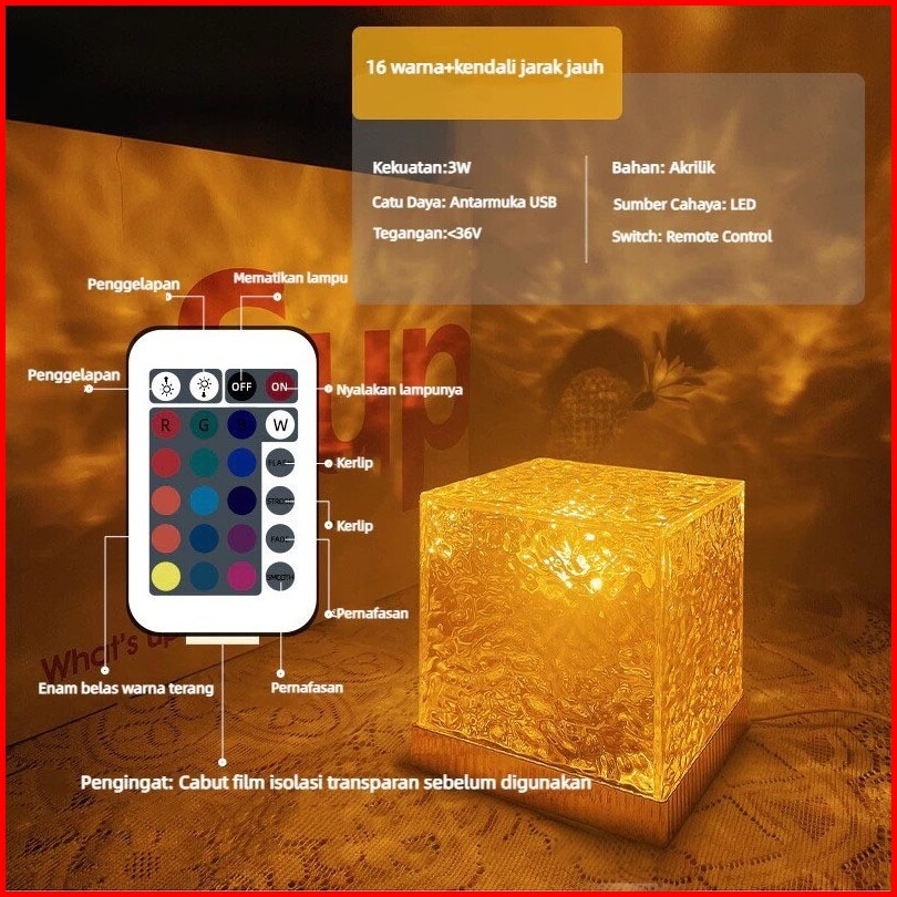 Lampu Proyektor Crystal Dinamis 16 Warna Lampu Led Lampu Tidur Kristal Aesthetic Untuk Penghias Ruangan