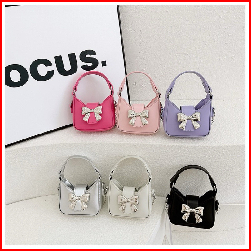Tas Mini Selempang Bahu Tali Panjang Anak Perempuan Bahan Kulit Pu Sintetis