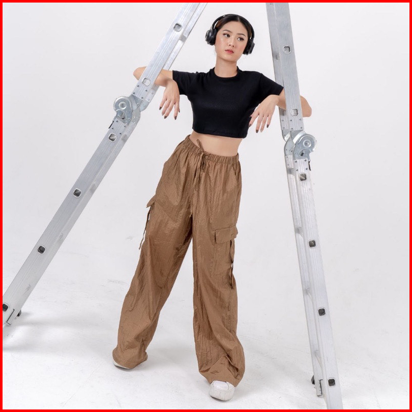 Celana Cargo Parasut Wanita Korean Look Kekinian