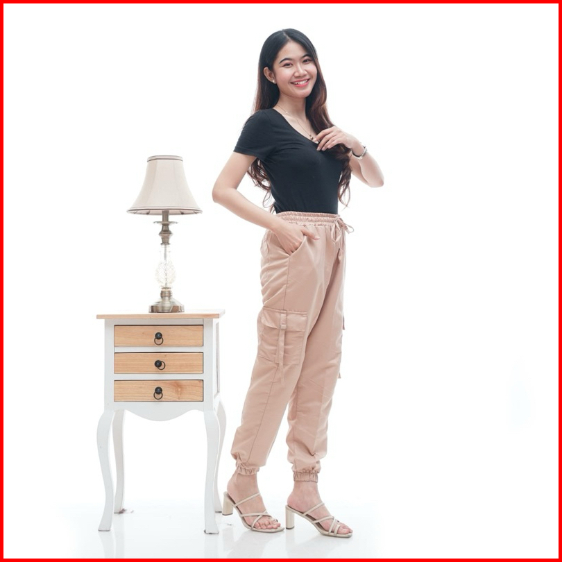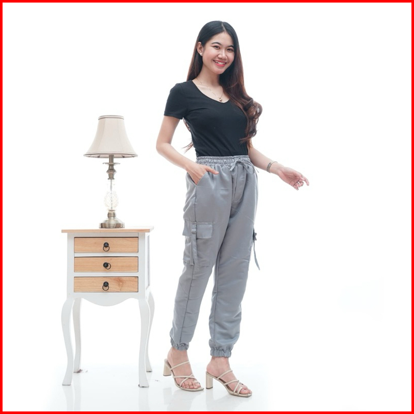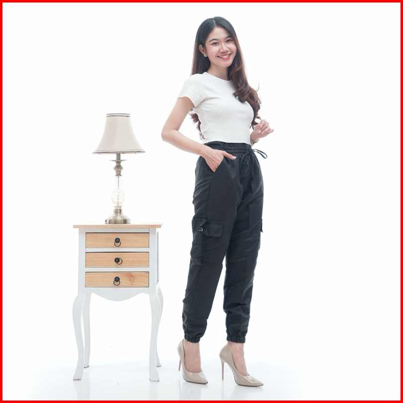 Pekalonganfashion.id - Celana Cargo Wanita - Celana Cargo Joger Wanita Warna Hitam