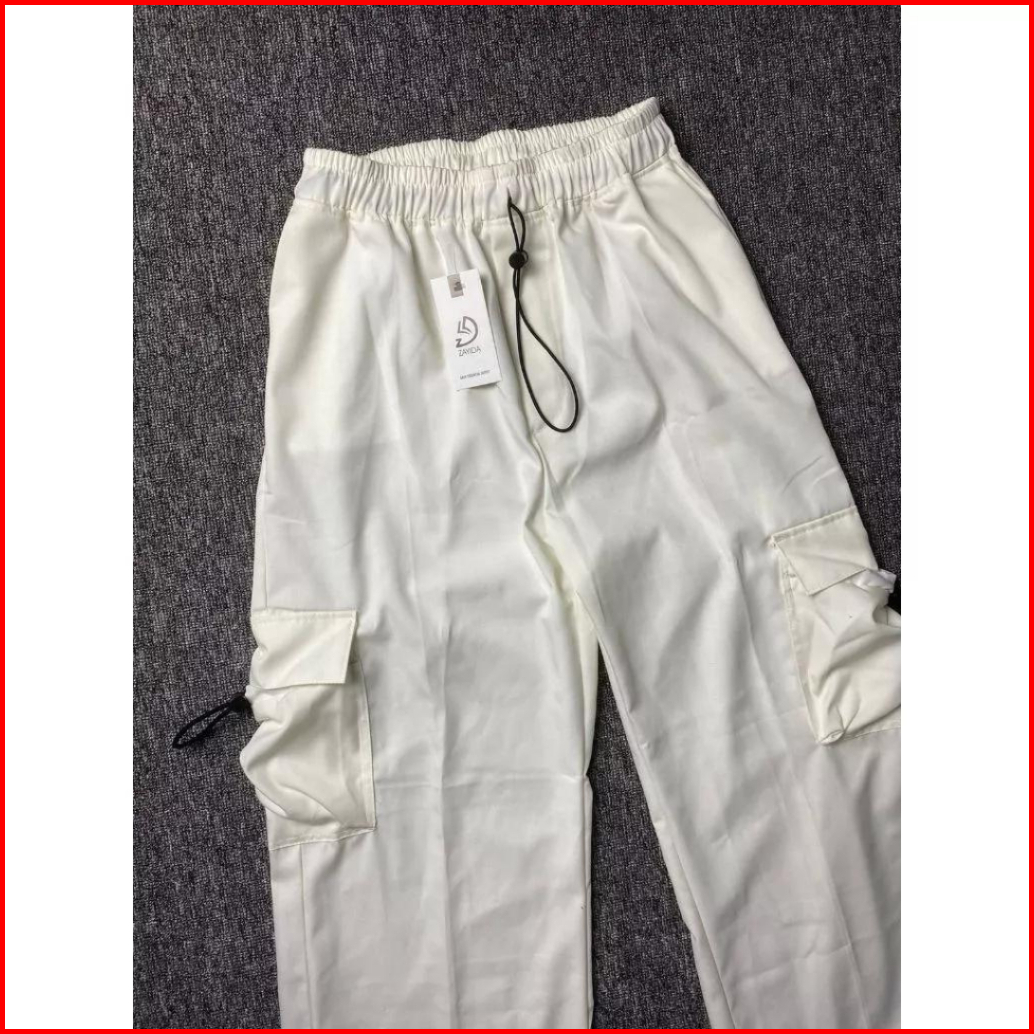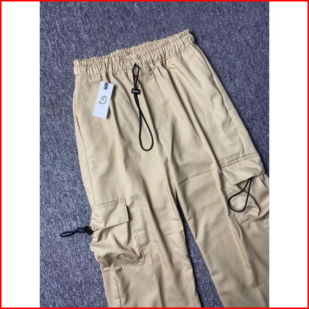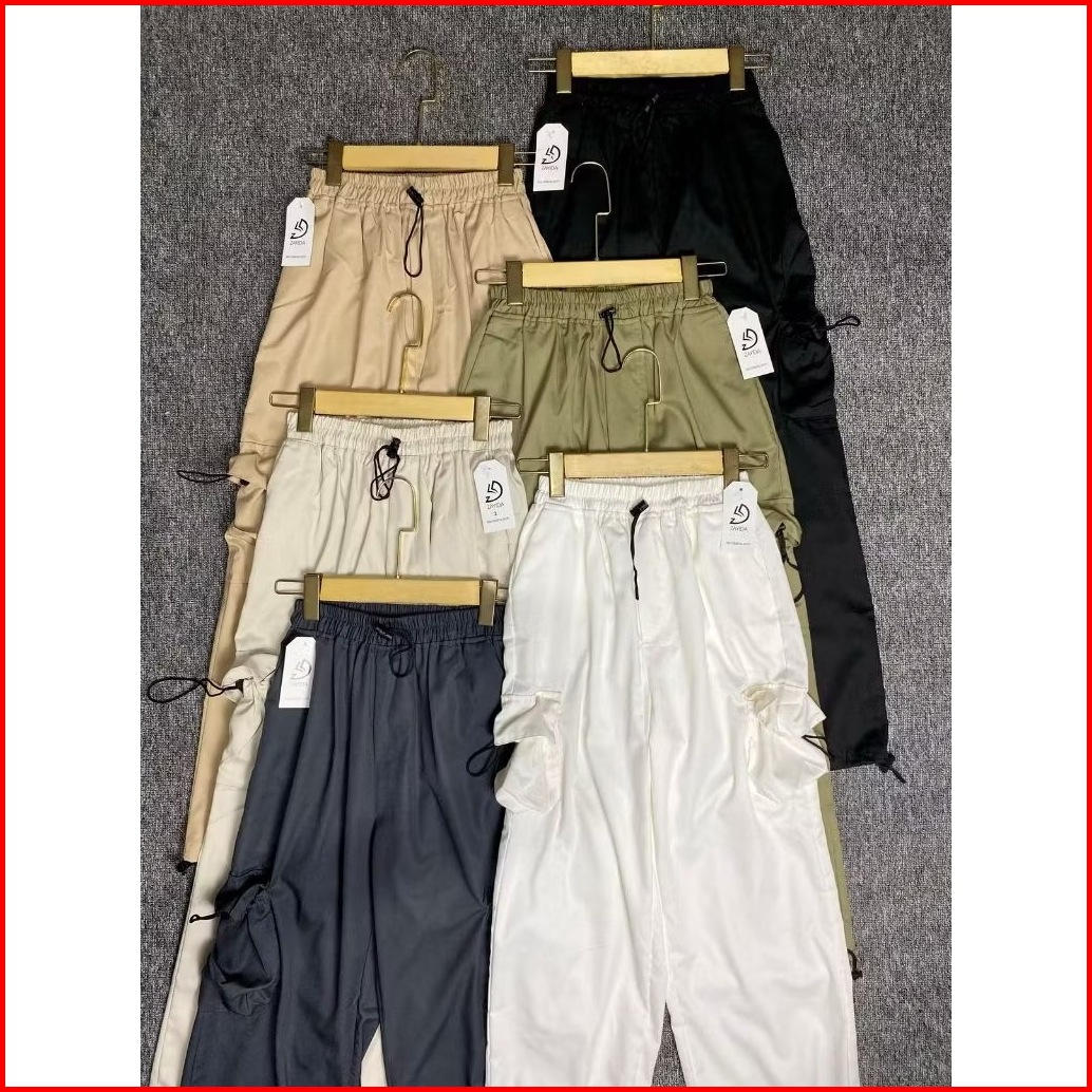 Kiya Cargo Pants Celana Kargo Wanita - Model Highwaist Longgar Dengan Tali Serut Jumbo - Kain Drill