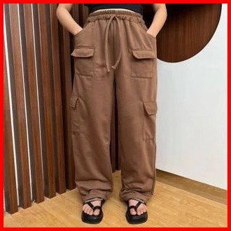 Celana Cargo Wanita Kekinian Terbaru Saku Banyak Potongan Highwaist