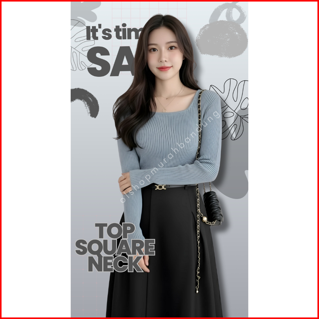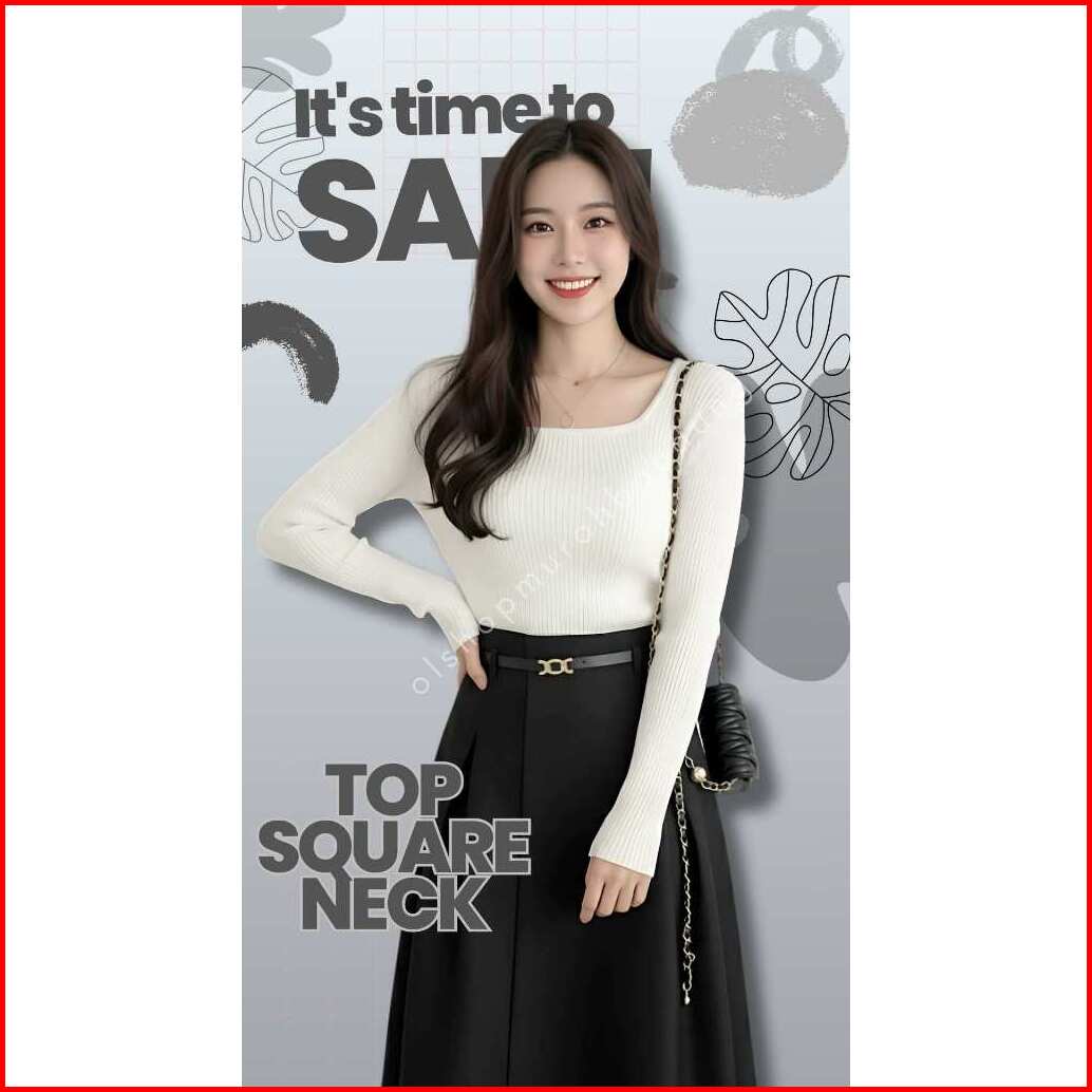 Knit Top Square Neck Long Sleeve Blouse Rajut Lengan Panjang Kerak Persegi