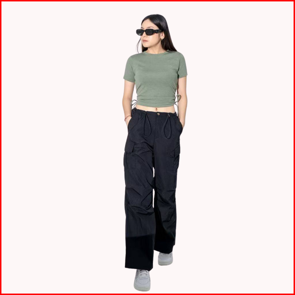 Celana Kasual Retro Yang Serbaguna Trendi Celana Lebar Kaki Lurus Pinggang Tinggi Celana Cargo Wanita Celana Longgar