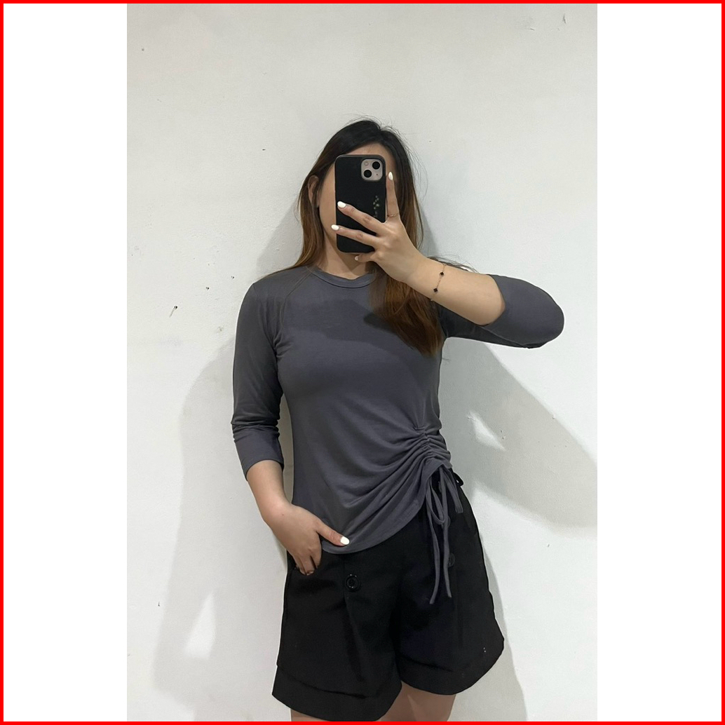 Bella Top Serut Tali Samping Atasan Cewek Lengan 7 8 Spandex Rayon Premium
