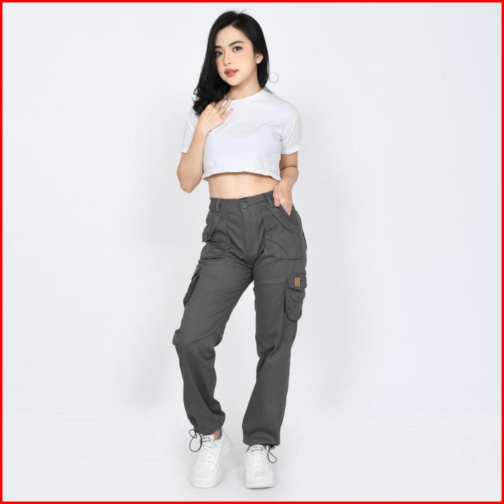 Duc 61 - Celana Panjang Cargo Tali Outdoor Wanita - Celana Panjang Wanita Abu
