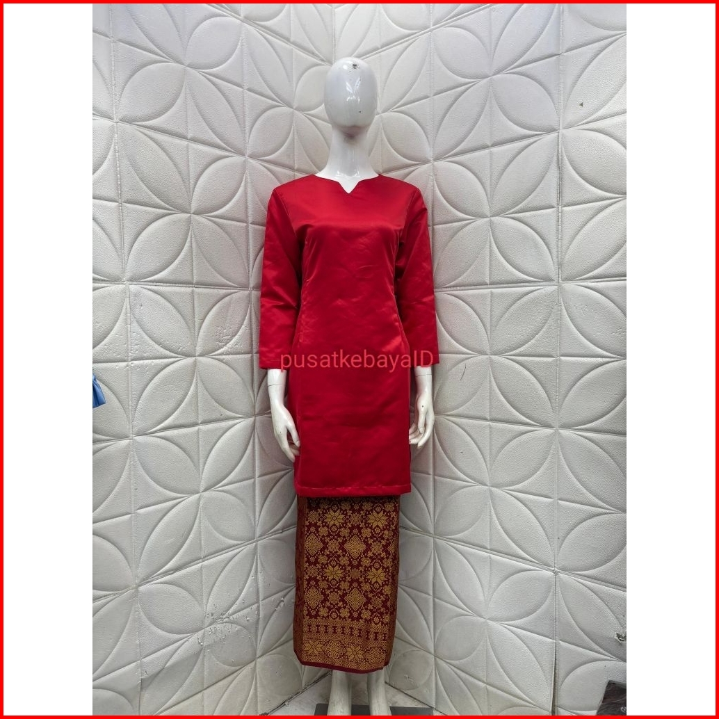 One Set Baju Kurung Bridal Polos Atasan Kebaya Melayu Polos Bahan Saten Bridal One Set Kebaya Melayu Polos Rok Lilit