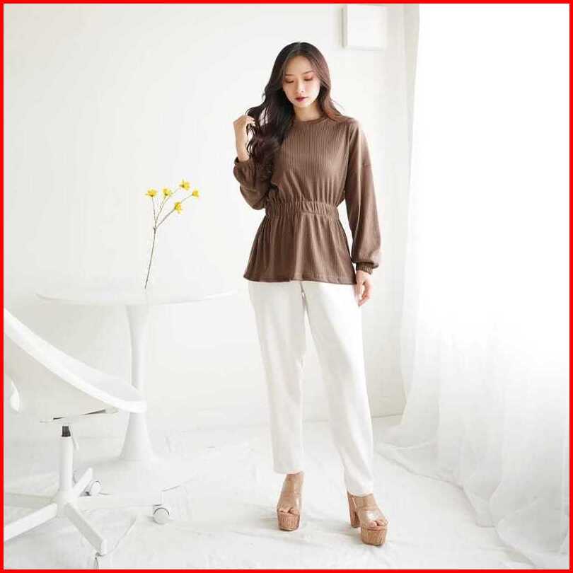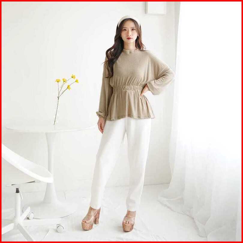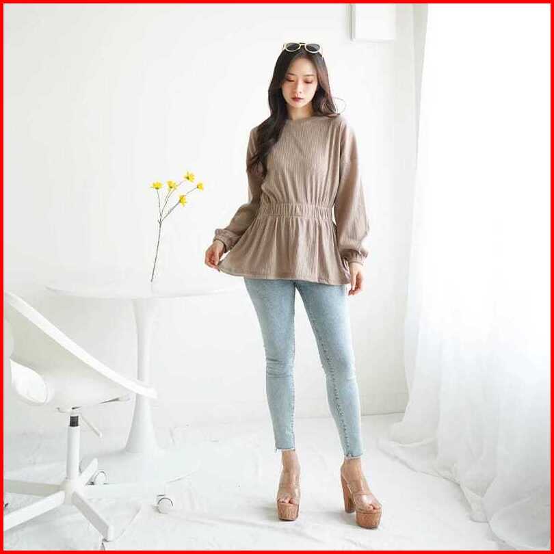 Malika Knit Rib Blouse Wanita Muslimah Terbaru Kekinian Korean Style