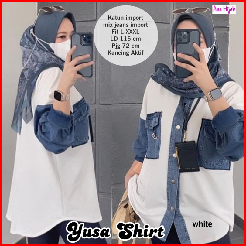 Yusa Shirt By Ana Hijab Kemeja Jeans Kombi Katun