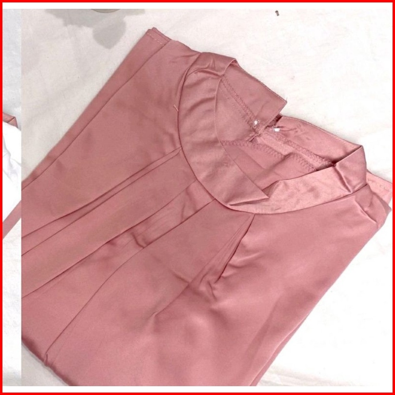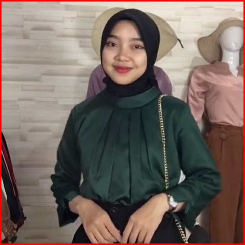 Devy Blouse Satin Atasan Leher Tinggi Hijab Friendly Blus Formal Silk Termurah