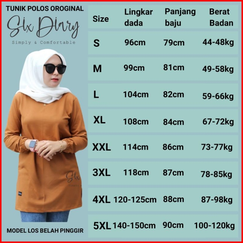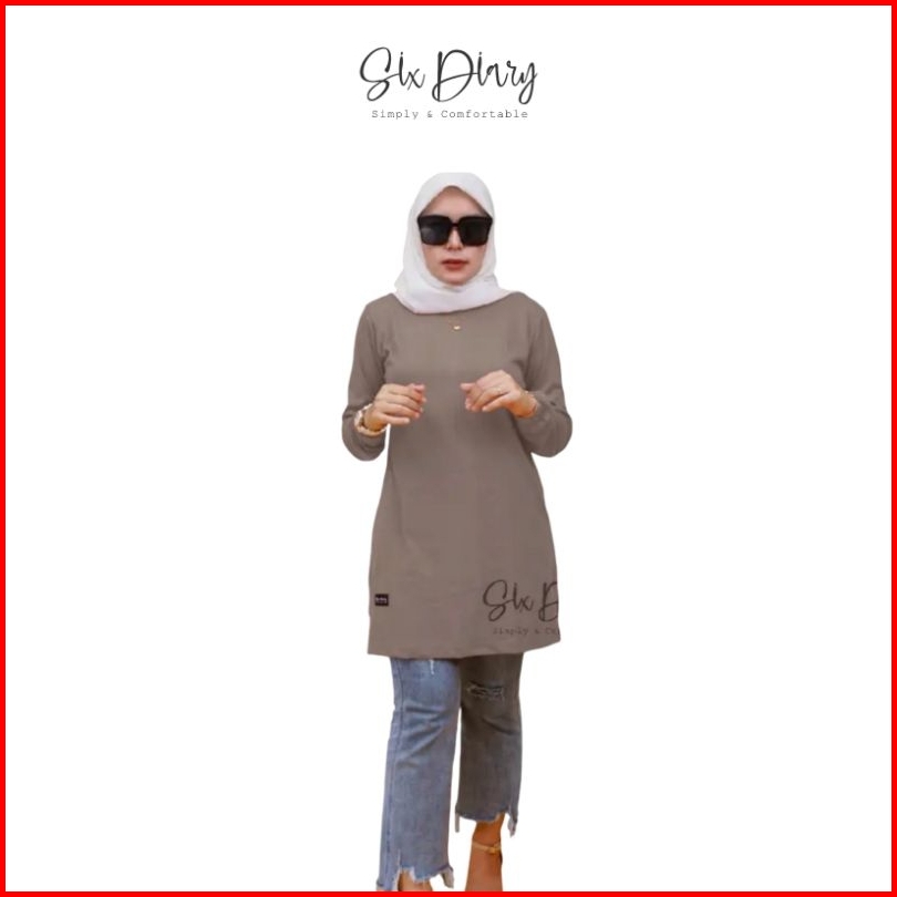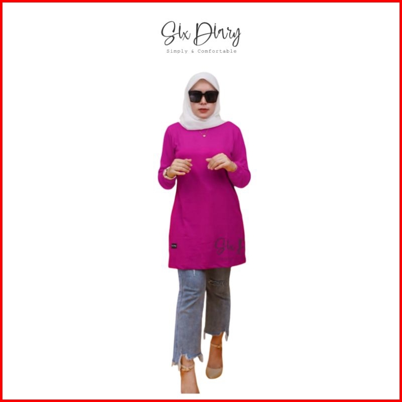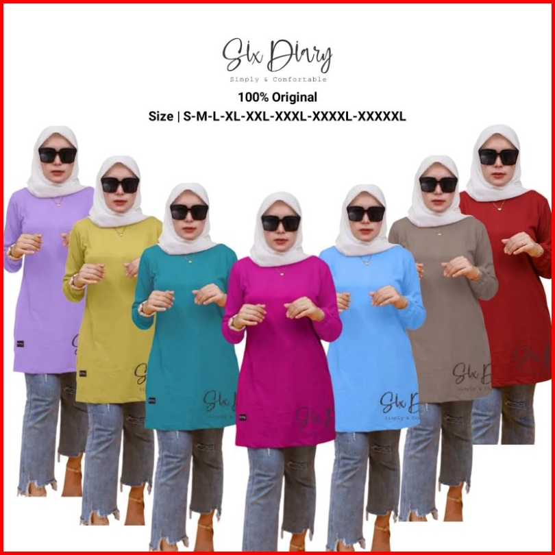 Baju Wanita Muslim Fashion Wanita Hijab Tunik Polos Tangan Kerut Six Diary Original Ukuran S - 5xl