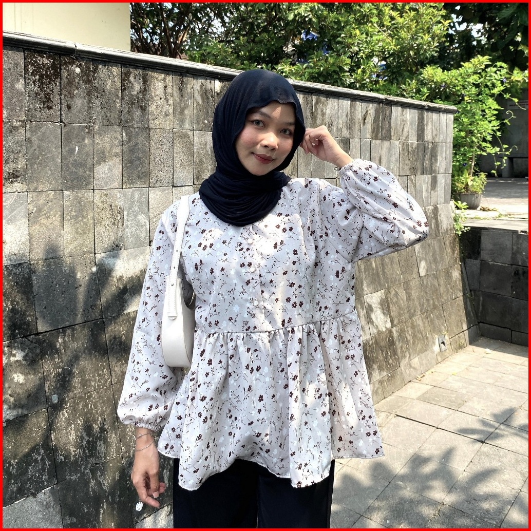 Grosir Solo Atasan Blouse Motif Bunga Raisha Blouse Vintage Korean Look Kerah Sanghai