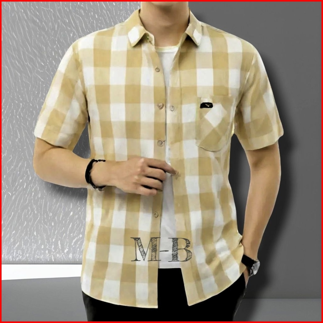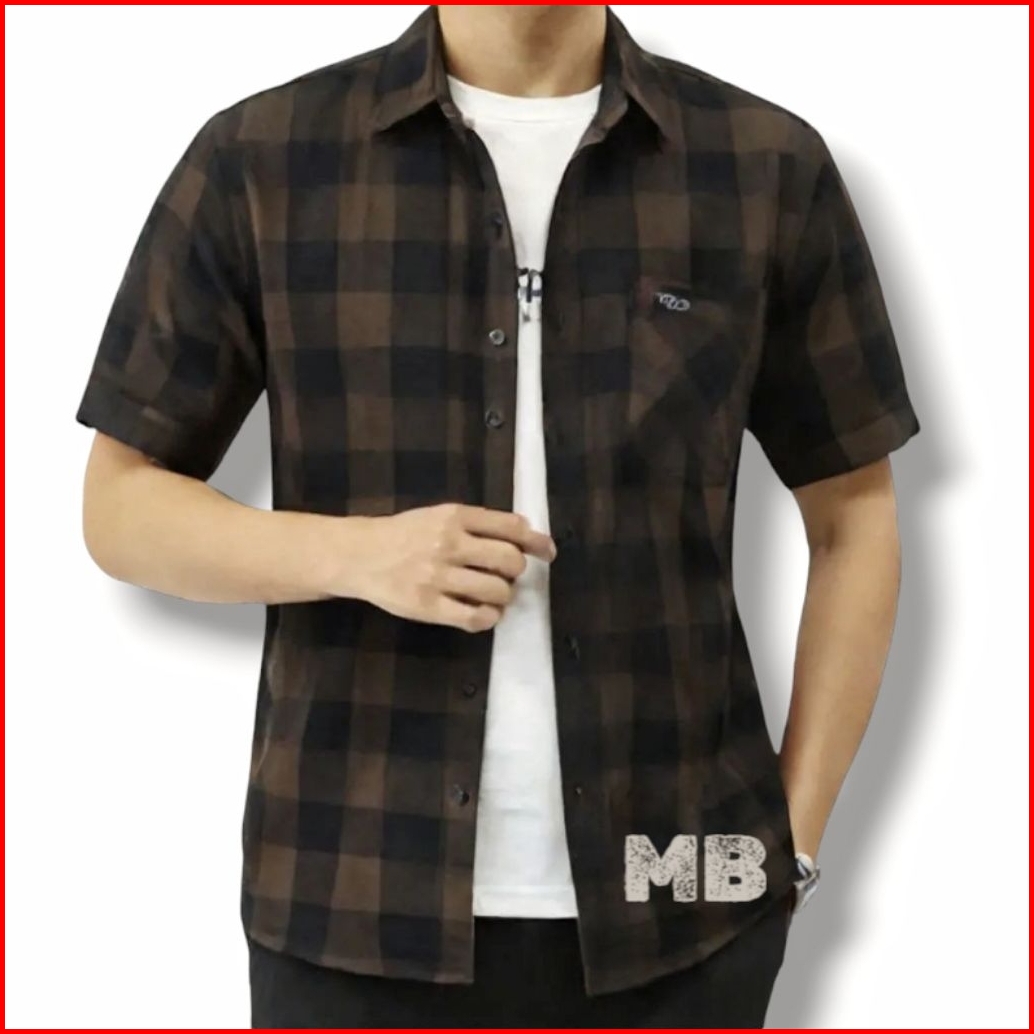 Kemeja Lengan Pendek Kotak Catur Pria Dewasa Kain Flanel Super Ukuran Standar Sampai Oversize