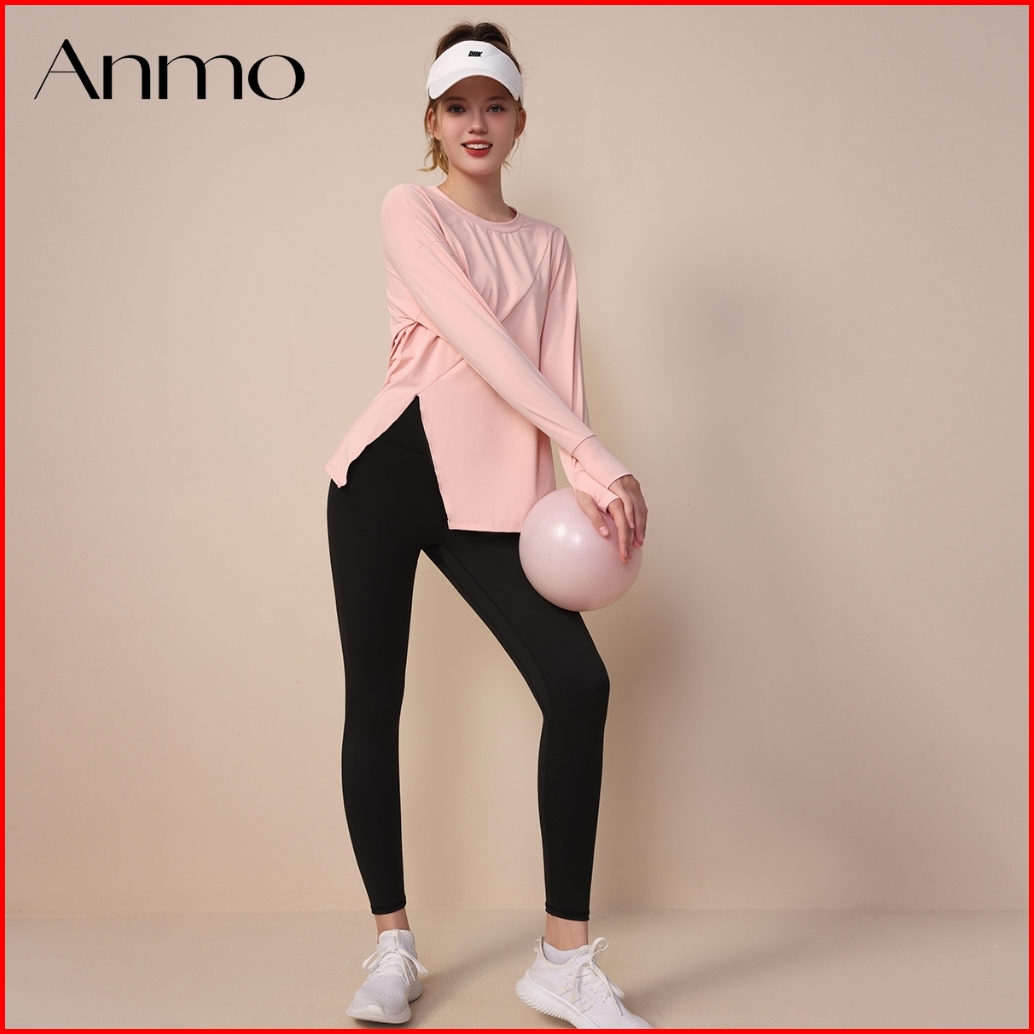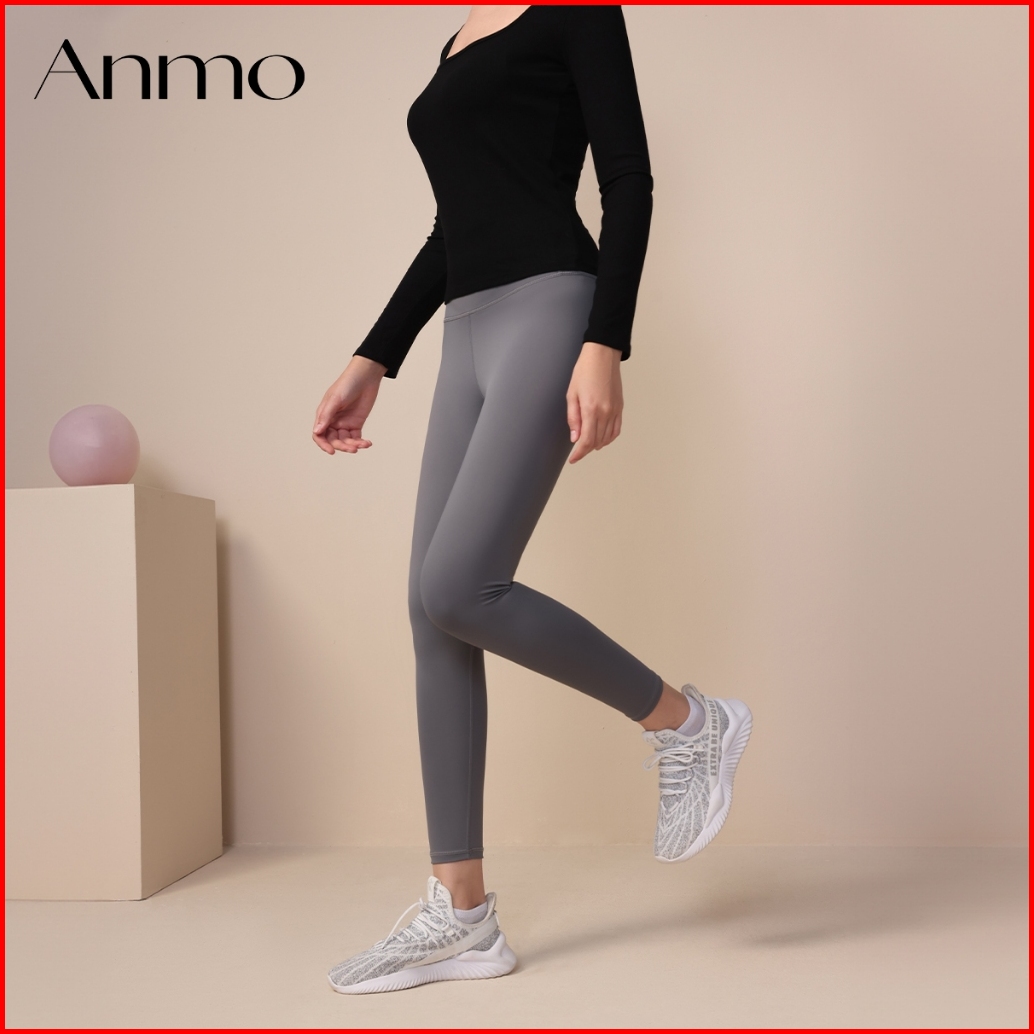 Anmo-yoga Leggingcelana Olahraga Wanita High Waist Polosgym Fitness Yoga Running Sport Pants