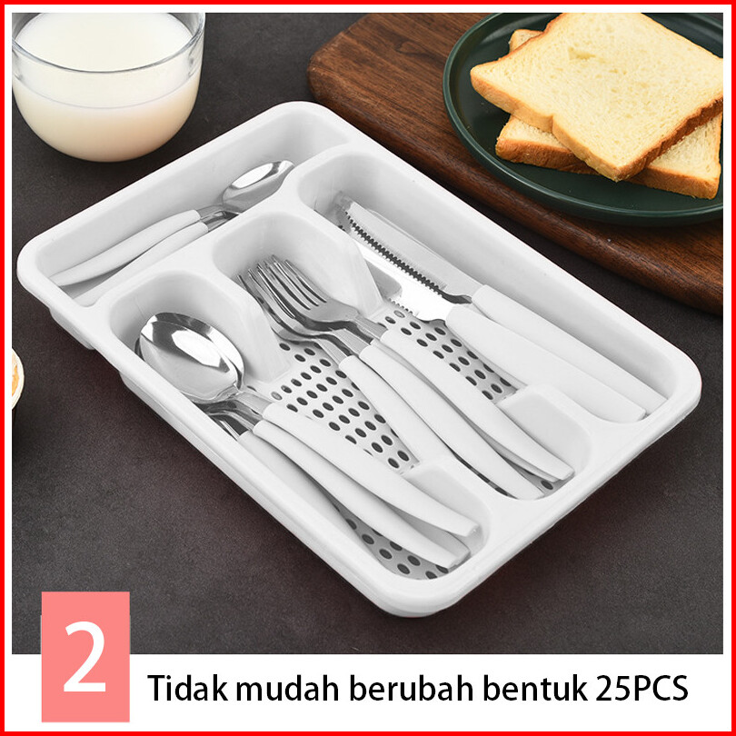 Set Pisau Garpu Dan Sendok Set Alat Makan Stainless Steel Set Alat Makan Plastik Sendok Garpu Pisau Box 25pcs