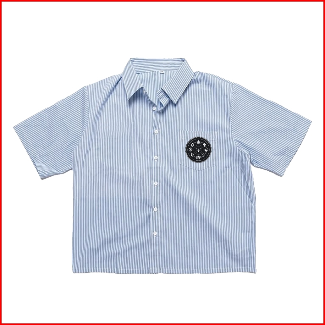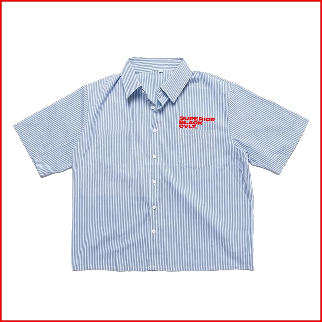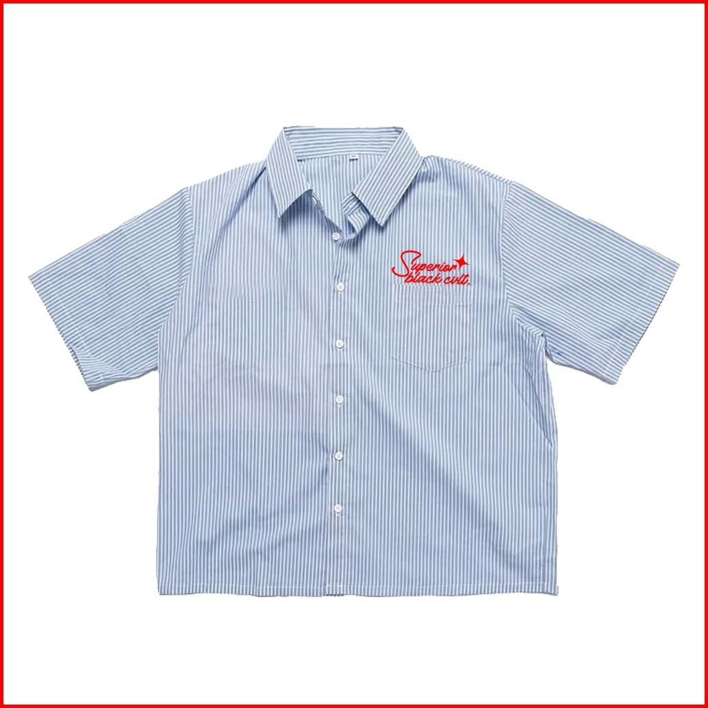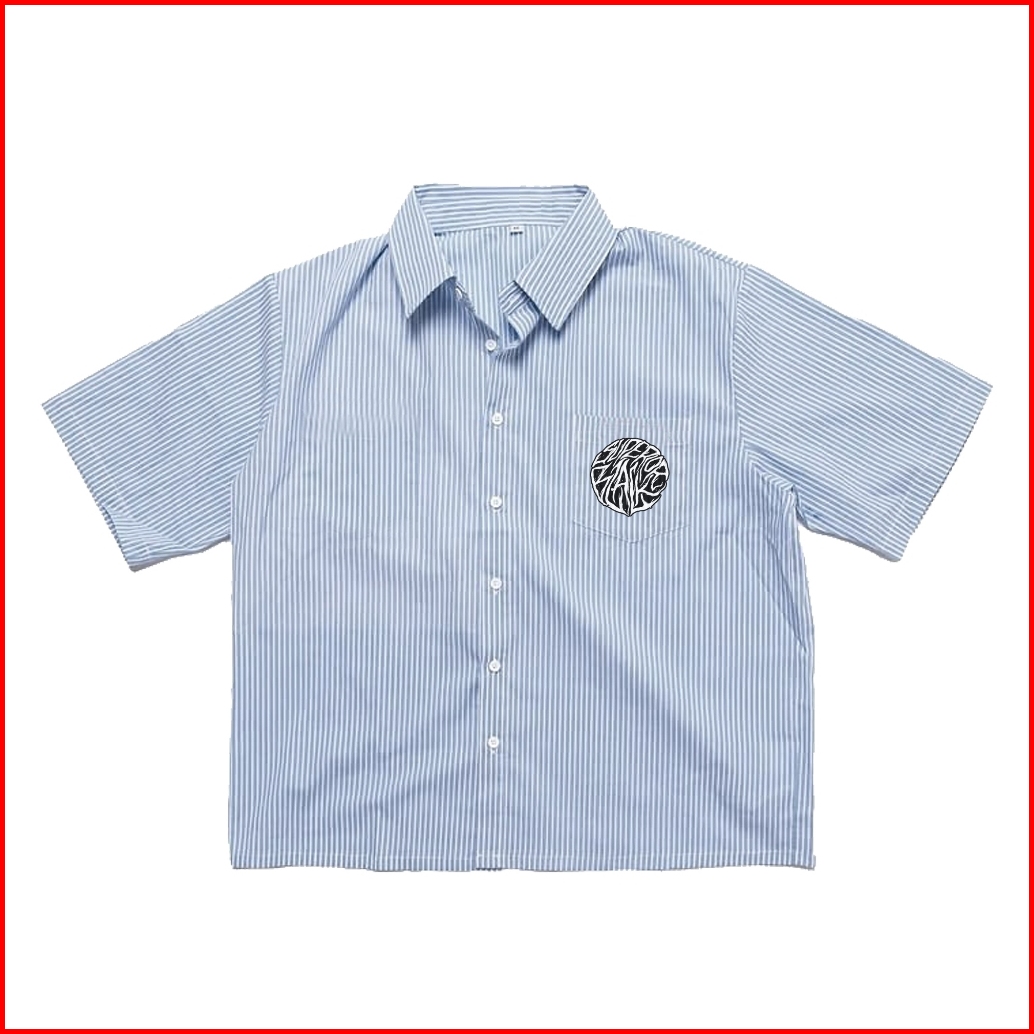 Cetvel Supply Kemeja Pendek Stripe Biru Boxy Fit Crop Skena