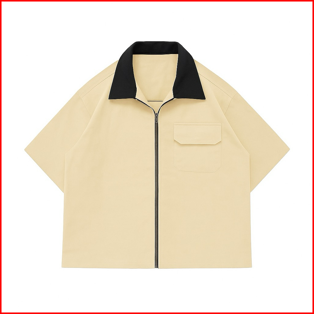 Kemeja Workshirt Boxy Black Pria Dril Coton