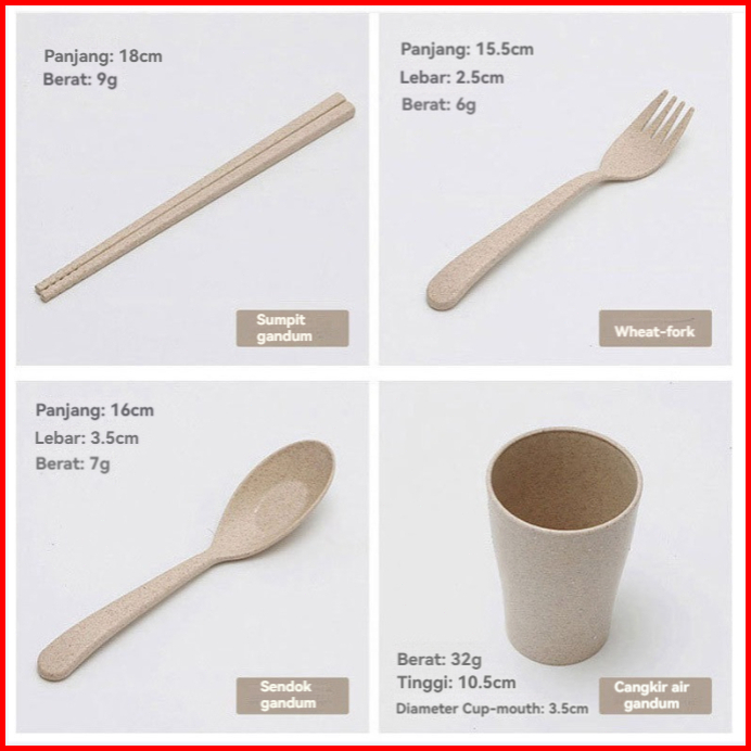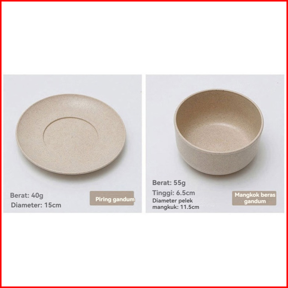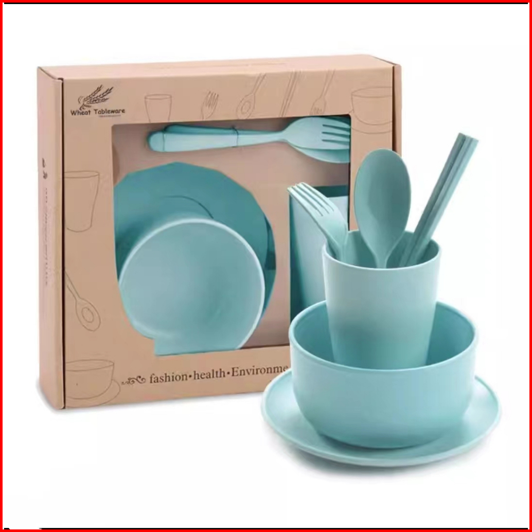 Highline 6 In 1 Set Alat Makan Jerami Mangkok Gelas Sendok Garpu Wheat Straw Cutlery
