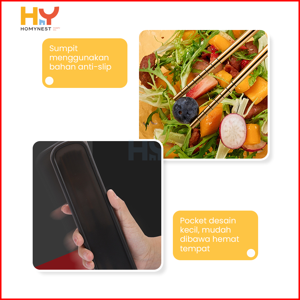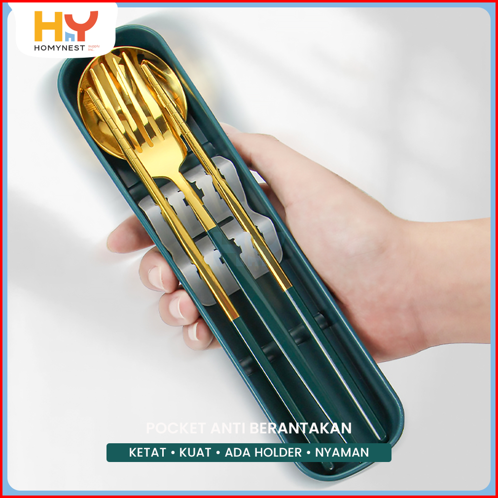 Homynest 1 Set Alat Makan Sendok Garpu Dan Sumpit Stainless Steel